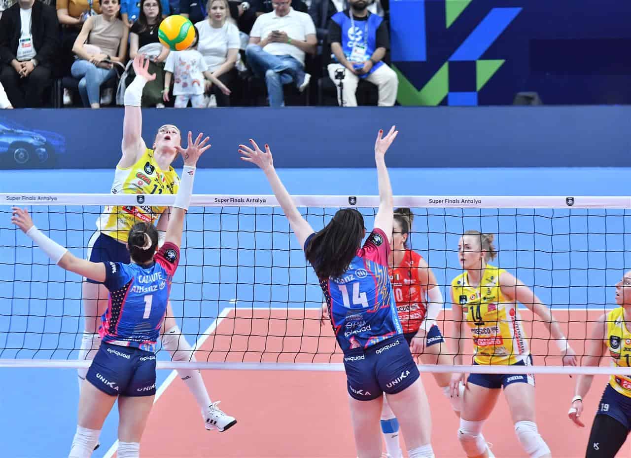 Allianz: Daalderop , Bajema 1, Orro 2, Malual 3, Rettke 7, Heyrman, Castillo (L), Egonu 19, Prandi ne, Pusic (L), Candi, Folie 7, Cazaute 10, Sylla 13. All. Gaspari.