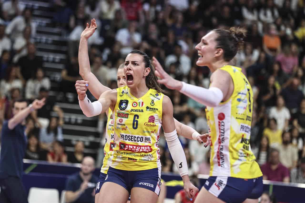 Coppa Italia 2024 (la sesta volta): PalaTrieste. 24 gennaio: quarti di finale Palaverde Prosecco Doc Imoco Volley-Il Bisonte: 3-0 (25-19, 25-13, 25-19). Trieste semifinale 17-2: Prosecco Doc Imoco Volley-Chieri 3-0 25-18, 25-18 e 25-12. Finale 18-2: Prosecco Doc Imoco Volley-Allianz Volley Milano 3-2 (25-21 22-25 25-19 19-25 15-11).