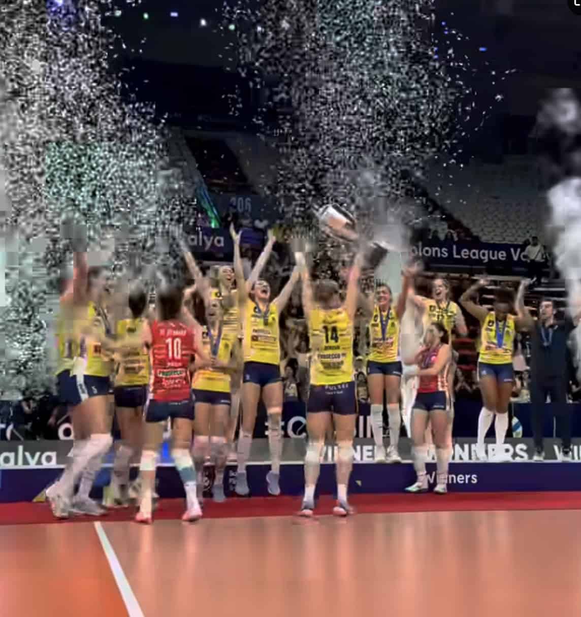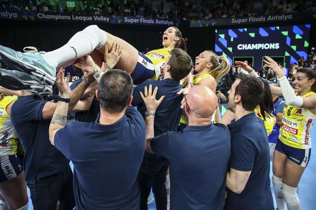 “È stato un giorno speciale perché è da tanto tempo che volevamo tornare a vincere la Champions League. È stato un anno incredibile perché abbiamo fatto il grande slam vincendo tutte le coppe a cui. Abbiamo un grande feeling con coach Santarelli e mi auguro che il nostro futuro assieme possa essere lungo e vittorioso”. Pietro Maschio: “È stata una stagione fantastica ma non voglio dire irripetibile, perché non metto limiti alle mie squadre. Abbiamo vinto tutti i trofei e a inizio anno era quasi un’utopia. Penso che la grande concorrenza ci abbia spronato a fare ancora meglio”.