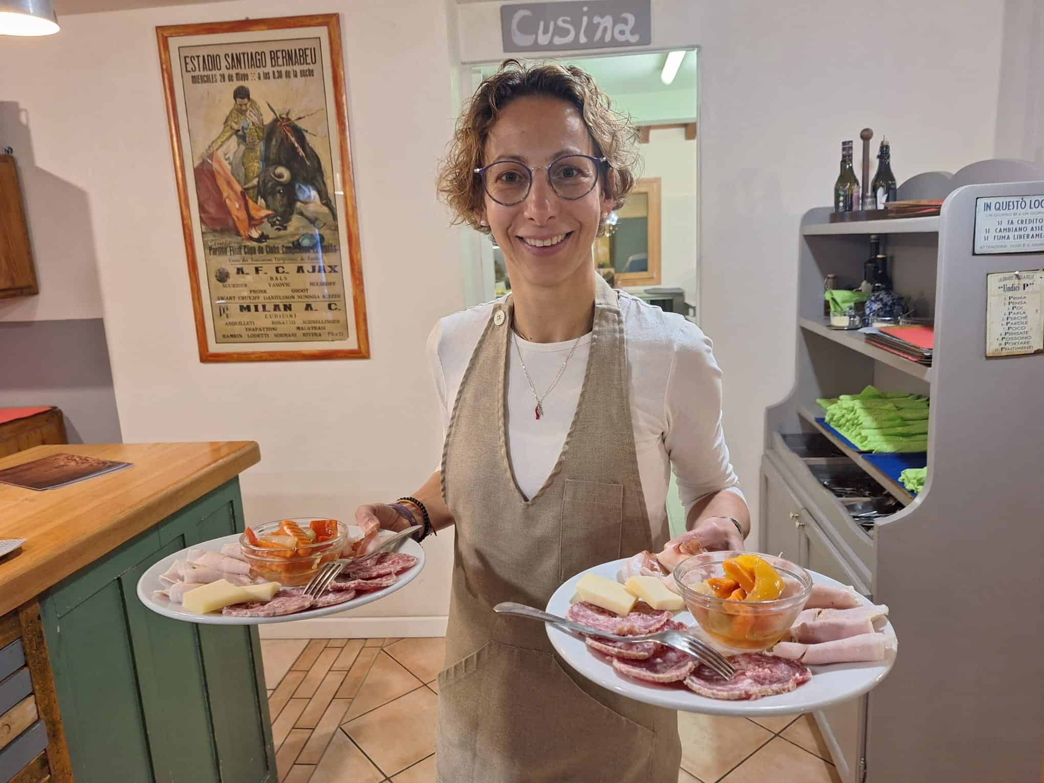 Io seguo la carne nelle grandi griglie, è la mia specialità. Non mancano le focacce, il vino, le birre, le conserve, i salumi. Tutte cose genuine che produciamo nei nostri campi. Abbiamo ricevuto numerosi riconoscimenti, da quello di Agrichef per la ricetta premiata “sopa coada”, al “Restaurant Guru”… Ma quello che a noi piace è vedere il sorriso della gente, soddisfatta nello stare qualche ora nel nostro agriturismo.