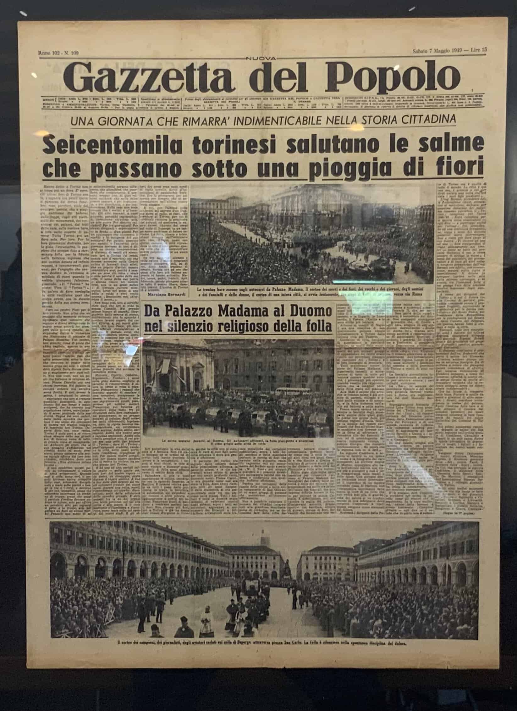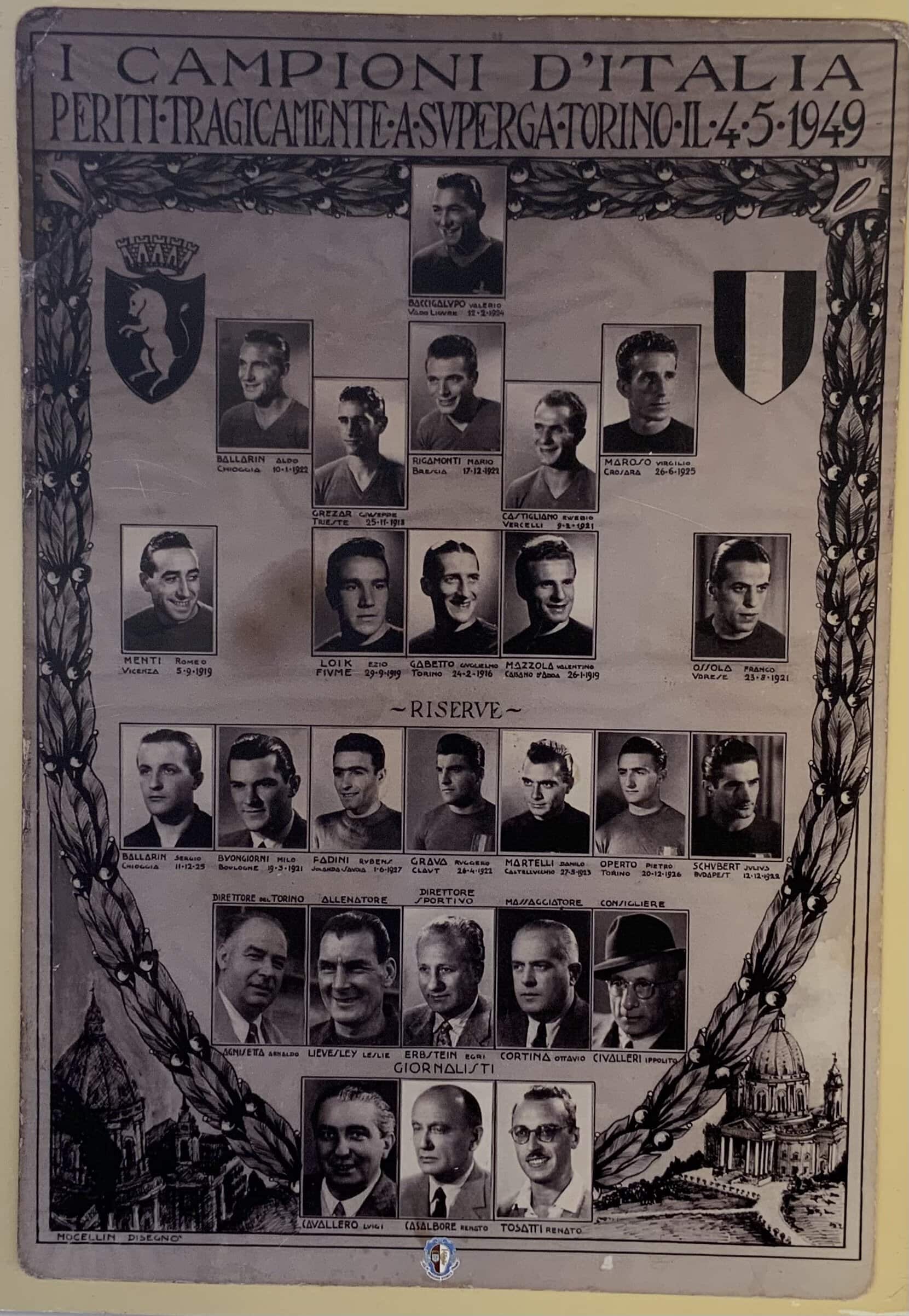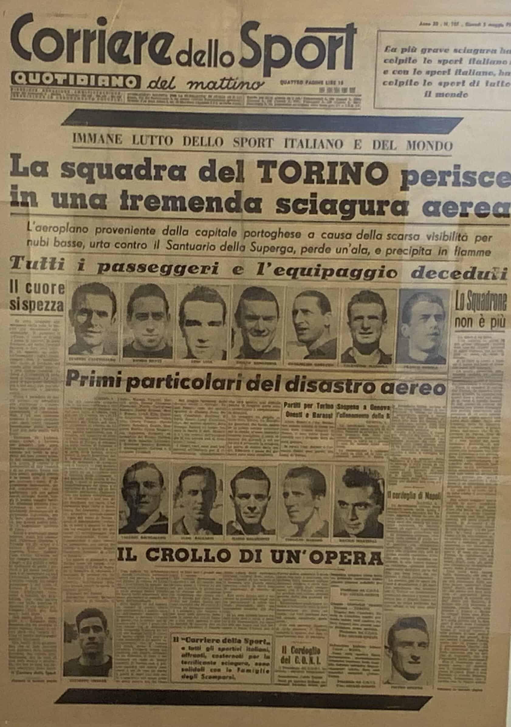 Con il nome di Grande Torino ebbe tragico epilogo il 4 maggio 1949, in quella sciagura aerea nota come la tragedia di Superga nella quale l’intera squadra perse la vita. L’epopea del Torino è durata otto anni, con la conquista di cinque scudetti consecutivi e di una Coppa Italia. La sequenza trionfale del Grande Torino si interruppe tragicamente il 4 maggio 1949 alle ore 17,05. I giocatori del Torino tornavano a casa da una trasferta a Lisbona per una partita di beneficenza contro il Benfica,