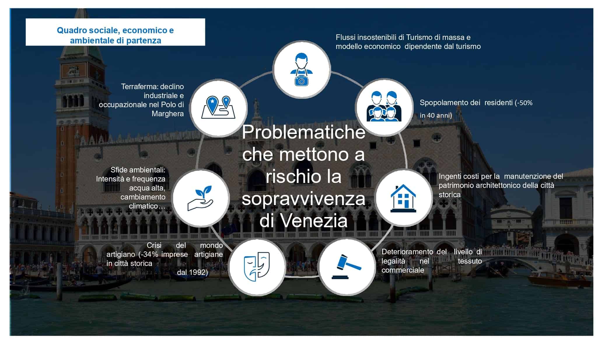 Assieme a queste realtà d’impresa e di grandi opere strutturali, la realtà cittadina vede anche la rilevante innovatività delle sue istituzioni culturali, in primis le università, che stanno operando congiuntamente nell’ambito della fondazione Venezia città sostenibile.