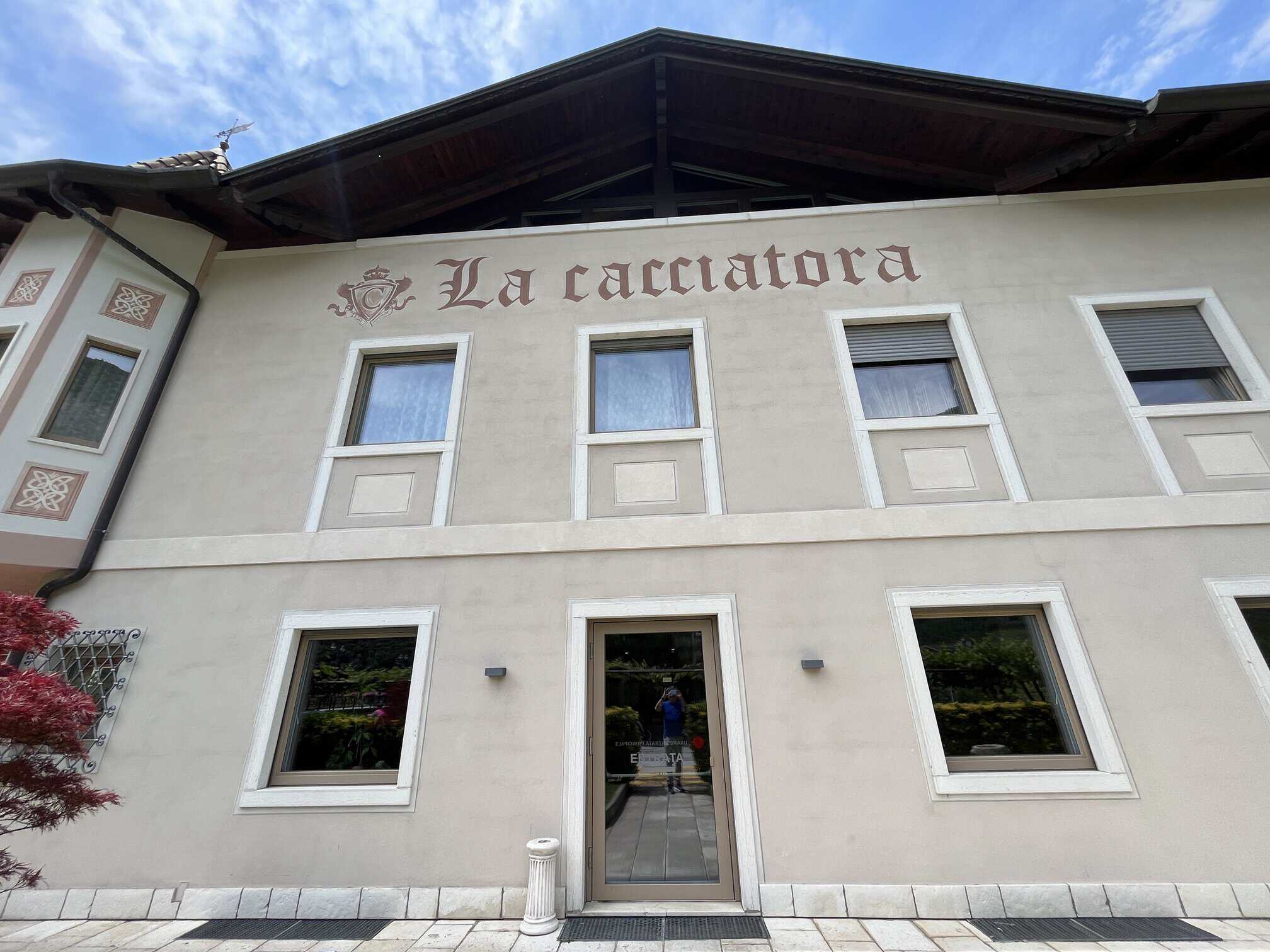 Questo era un ritrovo per i cacciatori. Una locanda nata nel 1850 dove i cacciatori, provenienti da diversi territori, sostavano e mangiavano. Era un punto di incontro per gli amanti della caccia. Conserviamo ancora una vecchia foto di come era “La cacciatora” alcuni decenni fa. Ora è un punto di incontro per famiglie, incontri, matrimoni, amici. Siamo a pochi chilometri da Trento, qui si fermano molti ciclisti e amanti della natura.