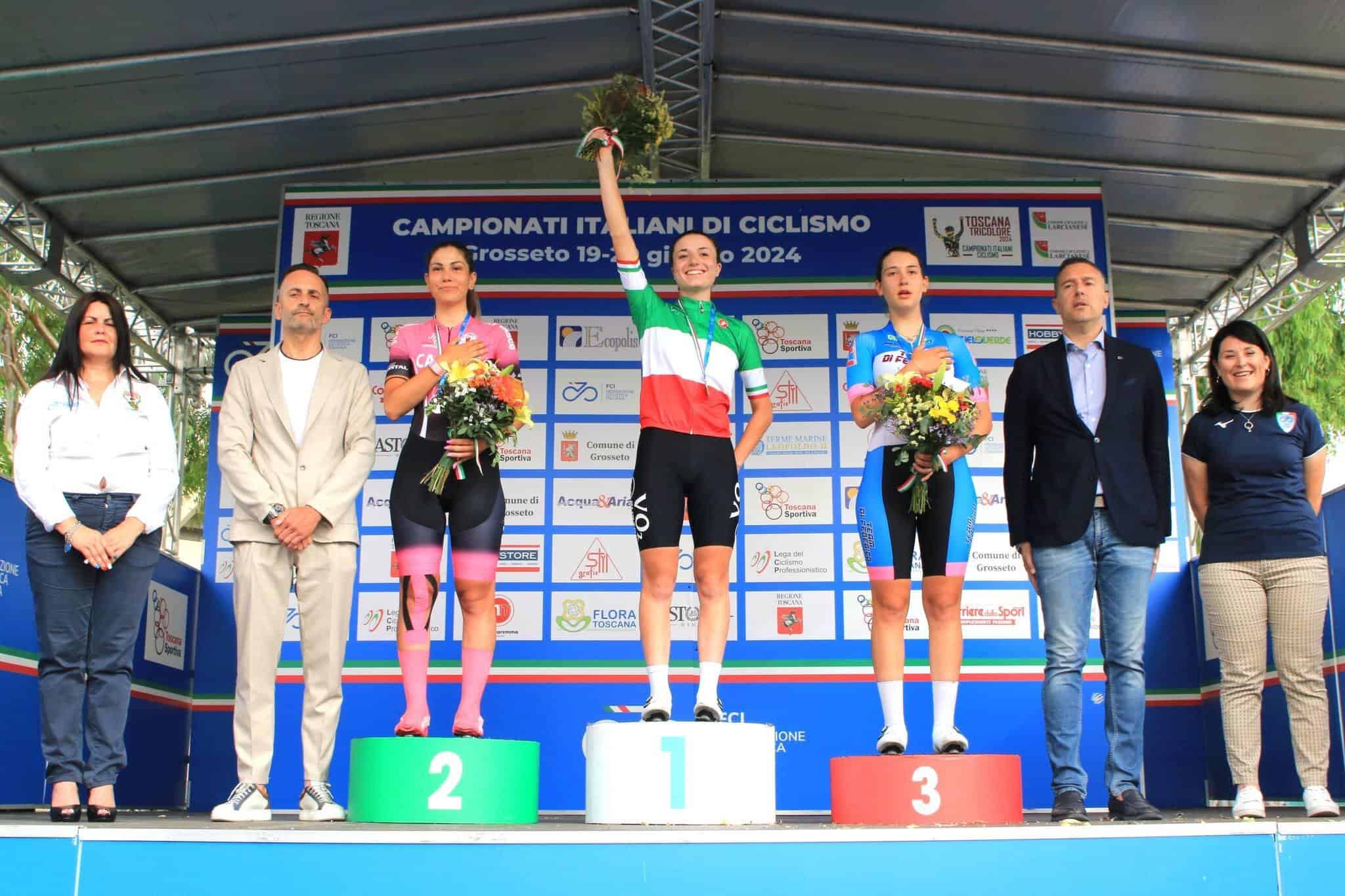 Filippo Ganna si conferma re indiscusso delle cronometro in Italia. Il piemontese ha vinto piuttosto nettamente la prova contro il tempo dei Campionati Italiani di Toscana 2024, 35,1 km totalmente pianeggianti nei dintorni di Grosseto Niente da fare per Edoardo Affini, che deve accontentarsi della seconda posizione a 23″ dall’amico e coetaneo Ganna. Buon 3° posto per Filippo Baroncini (UAE Team), che termina a 54″ e vince il duello per il 3° posto con Jonathan Milan (Lidl-Trek). Per meno di un secondo, Il finale della prova femminile sembrava un trionfo “al cardiopalma” di Elisa Longo Borghini, con quel tempo fissato sui 29 minuti e 9 secondi che le hanno permesso di abbassare di appena 95 centesimi il 29’10” di Vittoria Guazzini. Poi però entra in azione la giuria: per battere la gran progressione finale di Vittoria, Elisa ha tratto – involontariamente – vantaggio dall’ammiraglia più vicina a lei rispetto ai 25 metri consentiti. Risultato: 20 secondi di penalità che interrompono la striscia di vittorie consecutive della Longo (erano 4 titoli tricolori crono di fila, 7 totali: tuttora record) e fanno esultare la 23enne portacolori delle Fiamme Oro e della FDJ Suez. Invariata la classifica dal terzo posto di Elena Pirrone in giù. Tra le Under 23 trionfa Federica Venturelli al primo titolo “da grande” dopo una trafila giovanile dove ha vinto tutto.