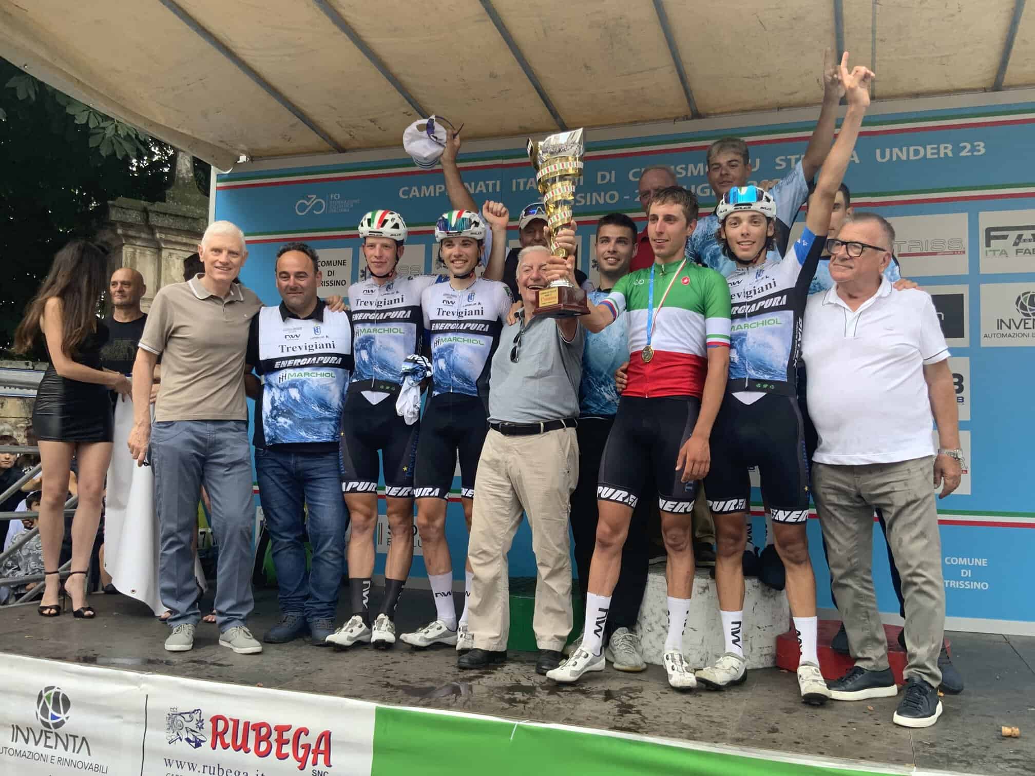 Un successo strepitoso arrivato dopo il rientro dall’incidente de La Ronde de L’Isard avvenuto nella tappa finale dove era lanciato verso la vittoria. Clavicola sinistra rotta in quattro punti. A festeggiarlo anche i genitori e i parenti. È il primo titolo italiano Under 23 dell’Uc Trevigiani Energiapura Marchiol secondo in due anni dopo il tricolore di Matteo Zurlo nella specialità gravel. Ad osservare lo strepitoso successo di Edoardo Zamperini c’erano i anche il commissario tecnico Marino Amadori e Fabrizio Bontempi, capo della struttura tecnica federale. Era dal 2009 che la Trevigiani non vinceva un titolo italiano su strada con Fabrizio Amerighi di Imola.