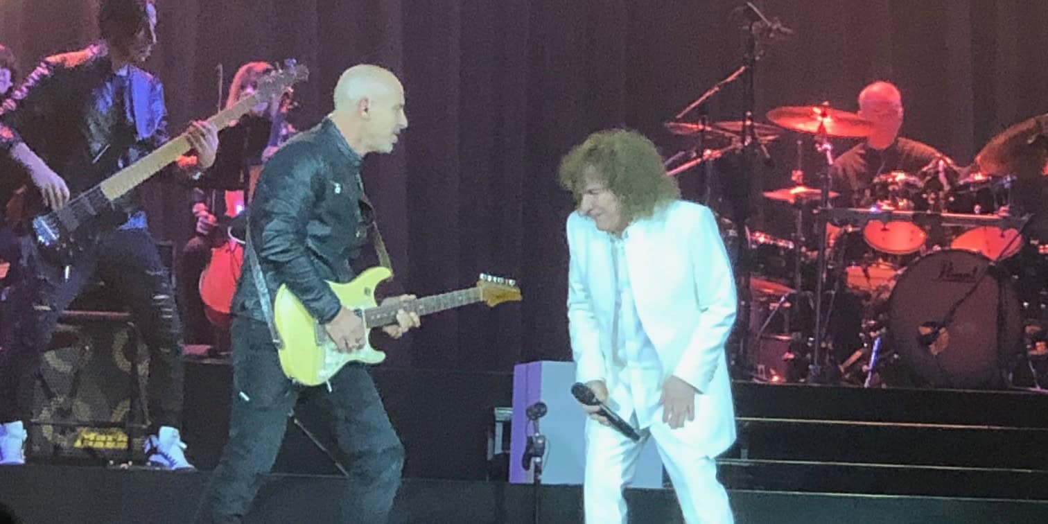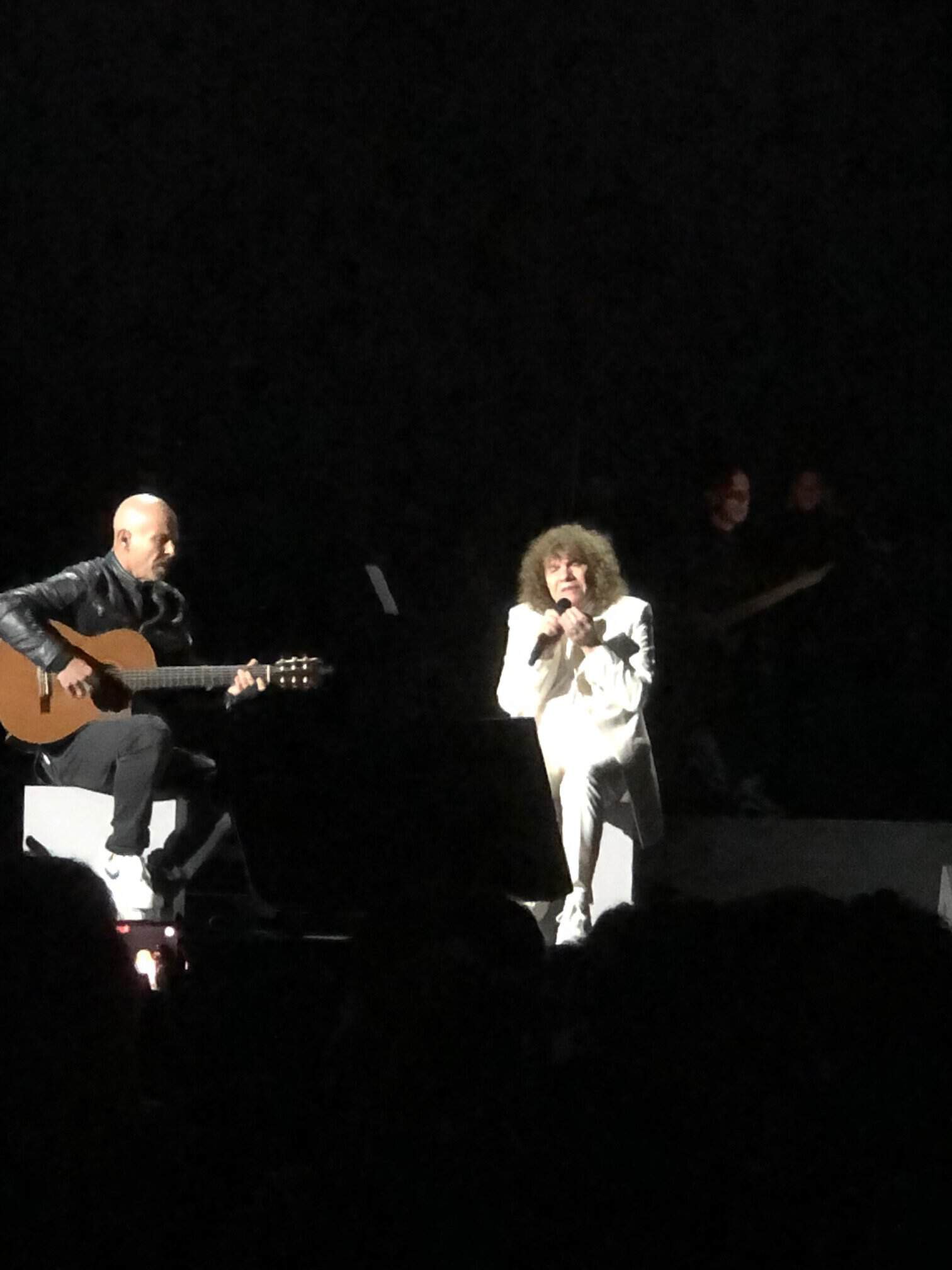 Arriva un momento istituzionale con l’ingresso sul palco del sindaco Damiano Tommasi e Gigliola Cinquetti che verrà premiata per i sessant’anni della sua canzone “Non ho l’età” e Cocciante chiede al pubblico d’intonarla. Finisce questo siparietto e si prosegue con la splendida “Poesia” cantata in duetto con il chitarrista. Il pubblico però lo reclama al pianoforte ed ecco “A mano a mano”, prima di cantarla non manca di ricordare Rino Gaetano col quale aveva fatto una tournee assieme al gruppo Perigeo e in quella occasione Gaetano cantò “A mano a mano” e Cocciante la meravigliosa “Aida” dello sfortunato cantautore calabrese.