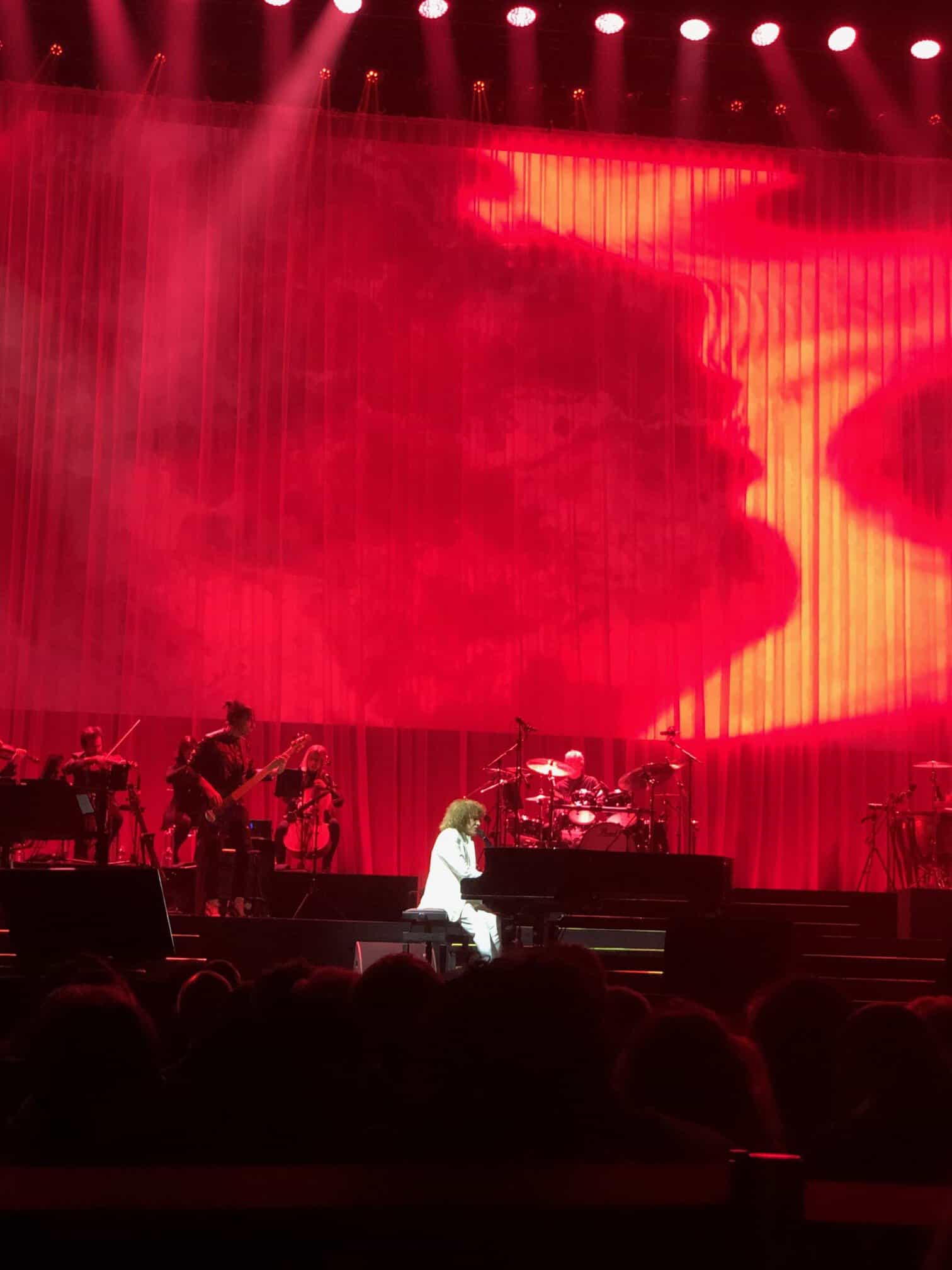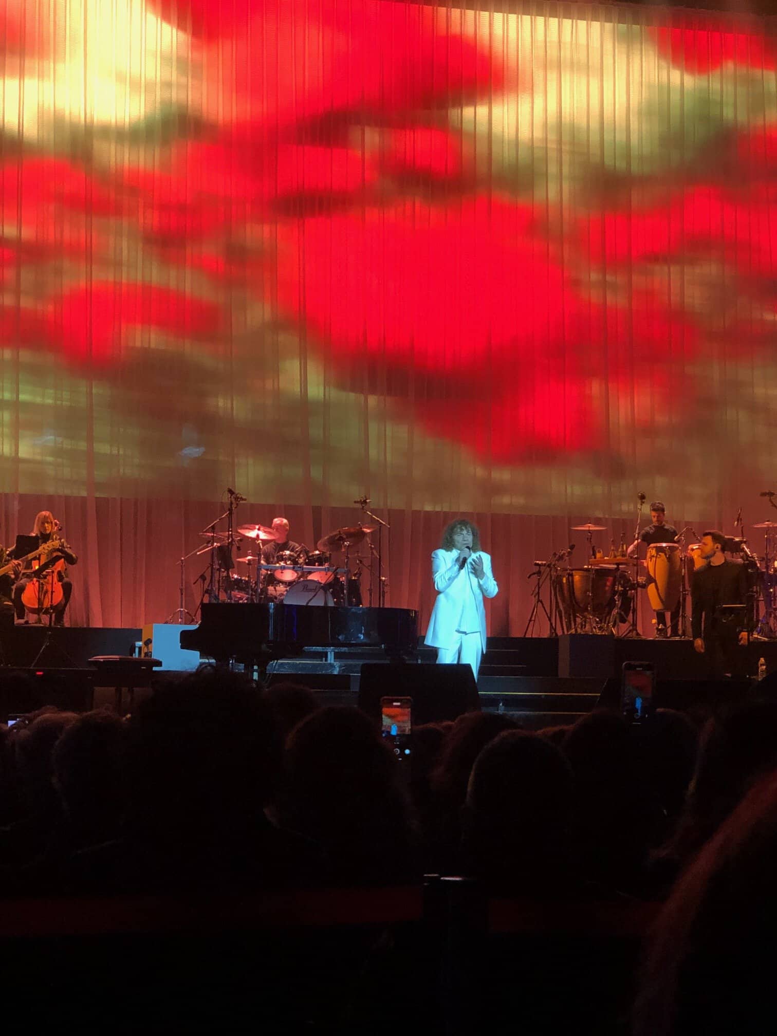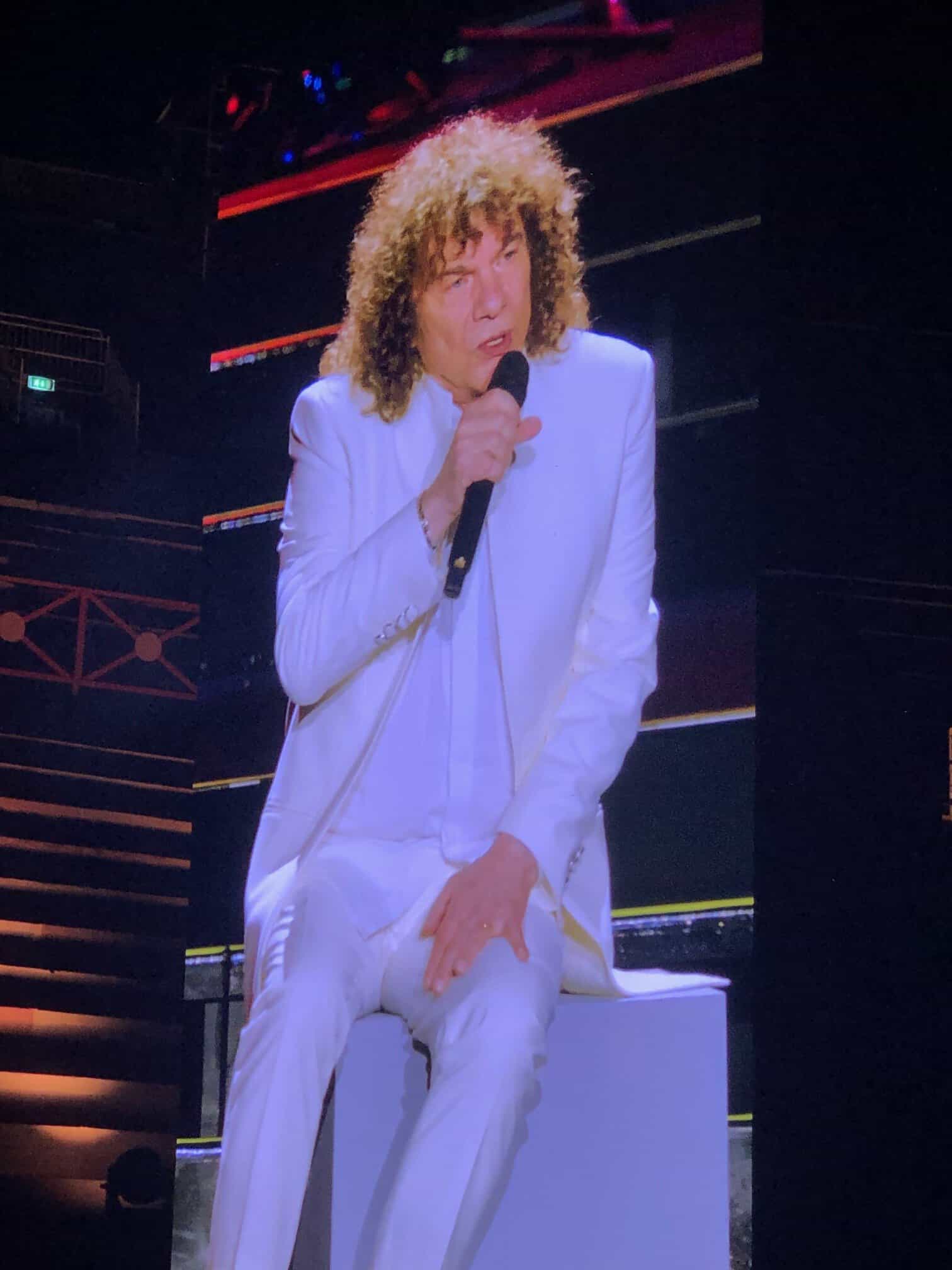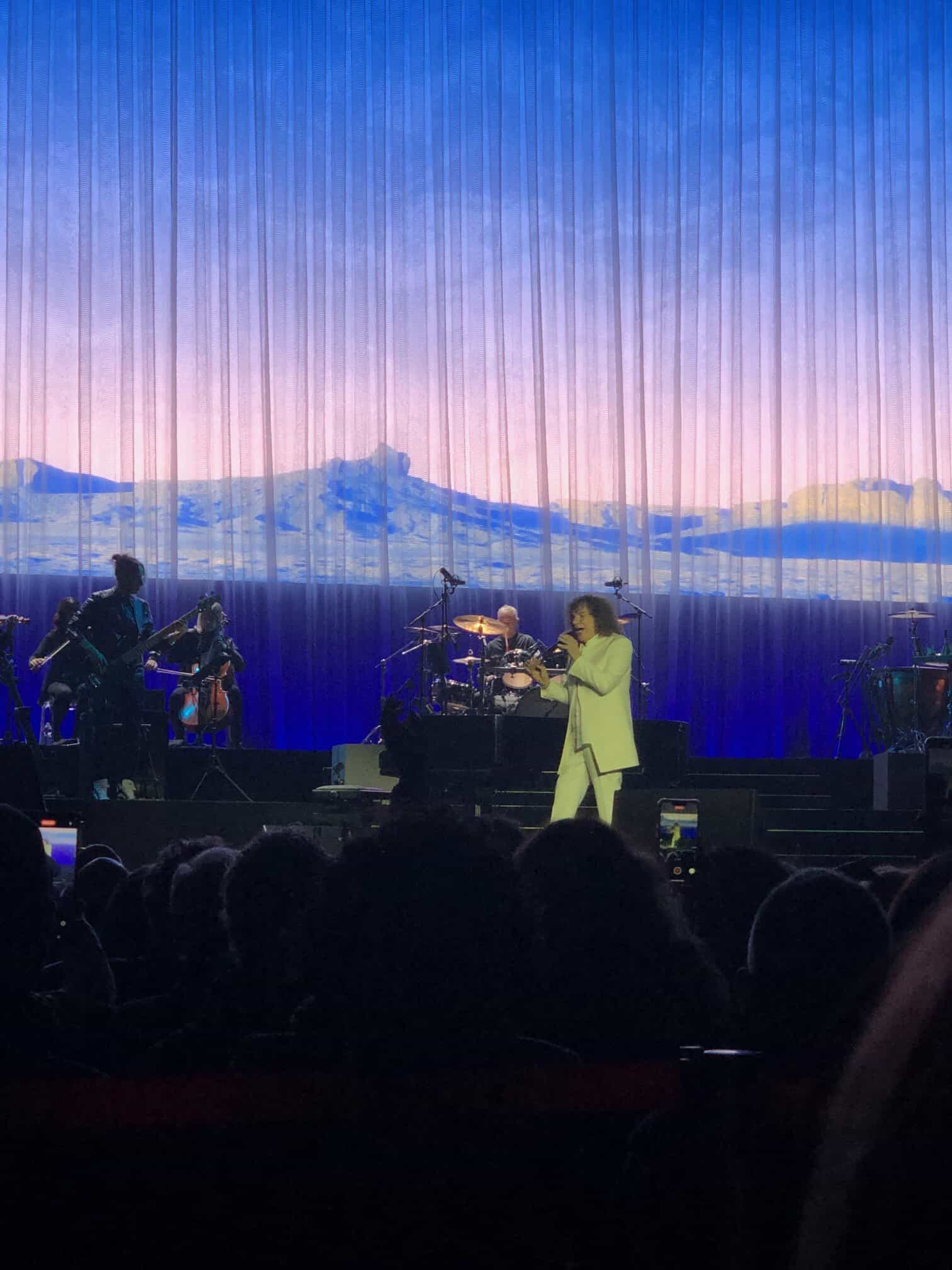 Sì è presentato puntualissimo alle 21, elegantissimo con un completo bianco. Accompagnato da un’orchestra composta da diciassette elementi tra musicisti e vocalist, ha iniziato partendo da molto lontano ovvero con la canzone “Uomo” tratta dal suo primo album del 1972 intitolato “Mu”, quando ancora si faceva chiamare “Richard Cocciante”. Sarà lo stesso artista a rivelare che all’inizio volevano lanciarlo come Riccardo Conte, poi Richard ma alla fine lui scelse il suo vero nome Riccardo). Era un album difficile “Mu”, legato alla leggenda dell’antico continente stesso con tematiche filosofiche e religiose.