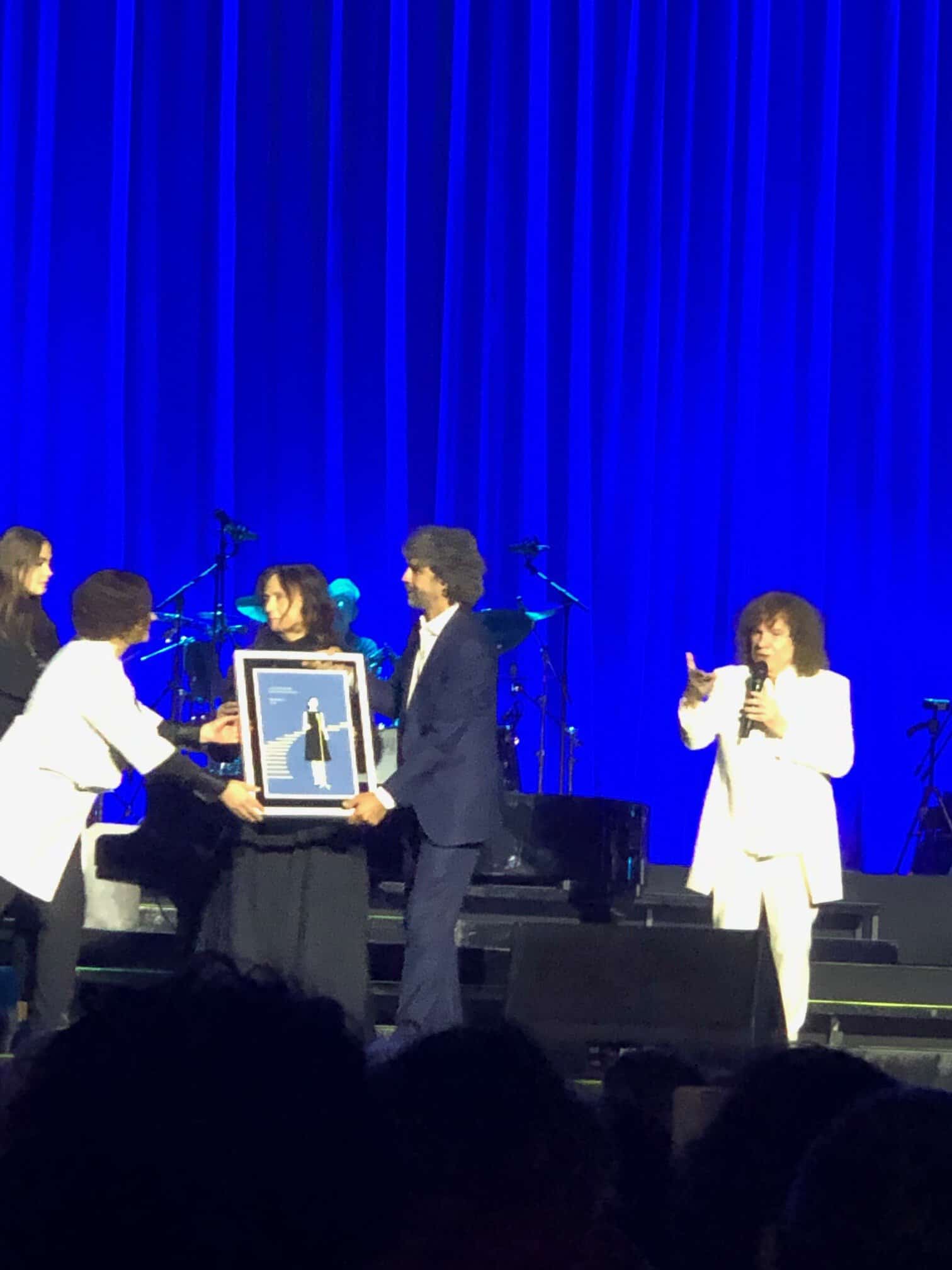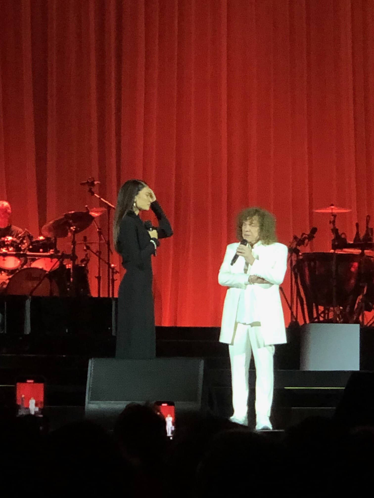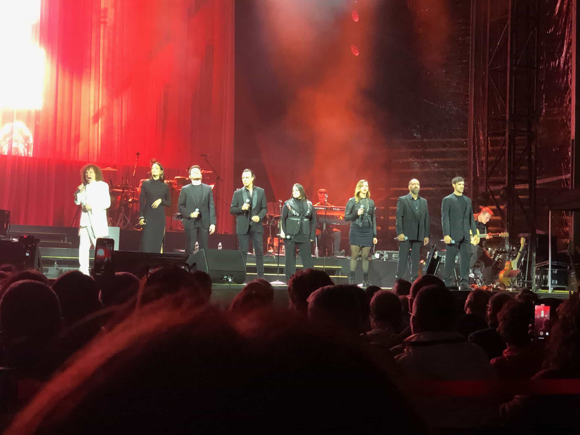 E’ un susseguirsi di emozioni con “Celeste nostalgia”, “ Non è stato per caso” fino a “Era già tutto previsto” canzone che fa parte della colonna sonora del nuovo film di Paolo Sorrentino intitolato “Parthenope”. C’è ovviamente spazio anche per le sue opere teatrali “Notre Dame” e “Giulietta e Romeo” con brani eseguiti assieme ai vocalist, tra questi Fabio Gismondi, interprete del ruolo di Romeo e con loro si unisce anche la splendida Elodie.