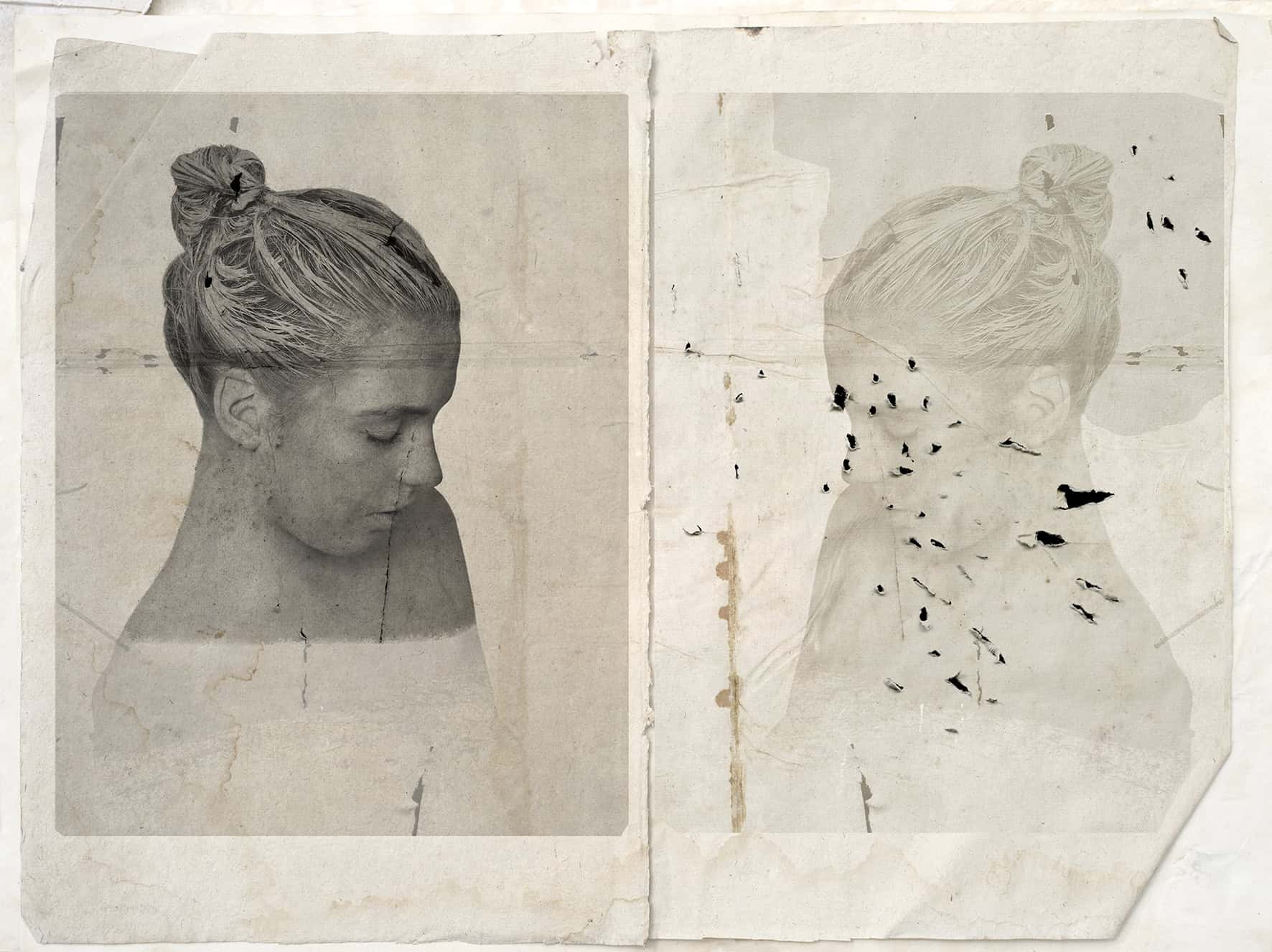 Fino al 12 gennaio 2025, presso l’Essiccatoio Bozzoli, per l’annuale ricognizione sull’attività degli artisti presenti nella collezione Punto Fermo, è ospitata la personale di Roberto Kusterle, curata da Antonio Garlatti. L’artista goriziano propone al pubblico un ampio repertorio di lavori, molti dei quali inediti, tratti dalla serie Cartacei (2019-2022). In questo ciclo i soggetti raffigurati e lo sfondo hanno pari dignità, entrambi sono protagonisti. Ogni immagine è il frutto della scansione e sovrapposizione di tipologie di carte diverse, di recupero, trovate in qualche libro antico o laboratorio di restauro. Ognuna di esse è stigmatizzata dai segni del tempo: imperfezioni, strappi, gore. Tutta la sua poetica ha lasciato spazio all’immaginazione. In Kusterle non ci sono certezze, ma possibilità. Possibilità di continue trasformazioni, metamorfosi, palingenesi.