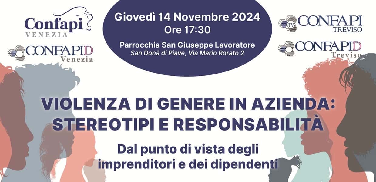 L’appuntamento è per oggi giovedì 14 novembre, dalle 17.30 alle 20, a San Donà di Piave presso la sala “Bachelet” della parrocchia di San Giuseppe Lavoratore: oltre un centinaio gli iscritti all’incontro. Le dinamiche che alimentano gli stereotipi di genere all’interno delle aziende e le responsabilità che ogni attore deve assumersi, sia esso imprenditore o lavoratore: sono alcuni degli argomenti al centro del convegno organizzato dal Gruppo donne di Confapi Venezia e Confapi Treviso. L’incontro, nel mese dedicato alla prevenzione alla violenza di genere, sarà l’occasione per riflettere e informarsi su come le imprese possano essere un ambiente sano, a sostegno della parità, prevenendo un fenomeno sociale statisticamente sempre più preoccupante.