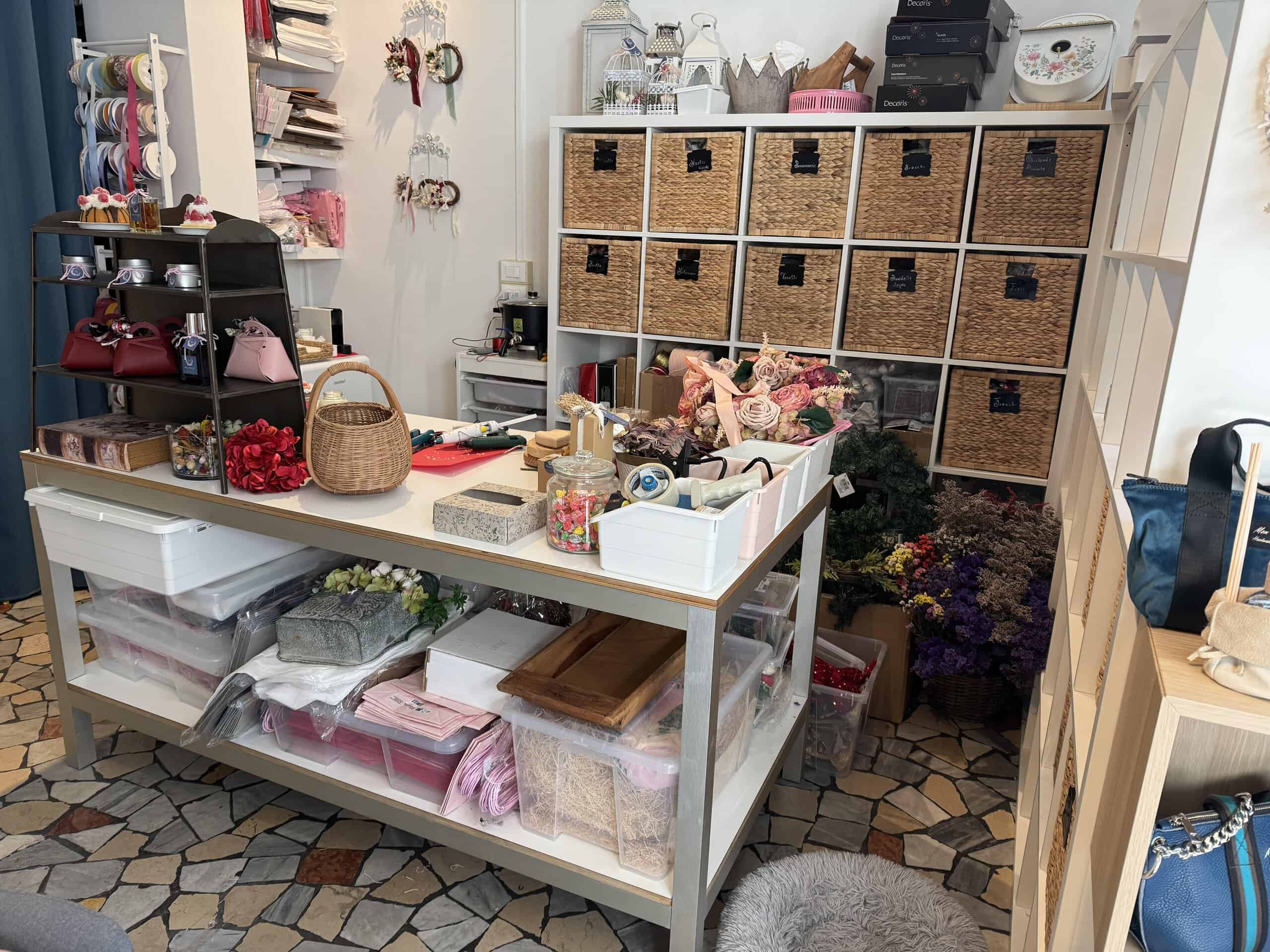 “Eh sì! Sono andata alla ricerca di uno spazio vicino a casa mia, per poter comunque seguire i miei figli, dove trasferire il laboratorio, dove poter lavorare e anche vendere al dettaglio. Sono stata fortunata: ho trovato questo negozio proprio a due passi da dove vivo. Aveva anche le dimensioni giuste, era perfetto!”.