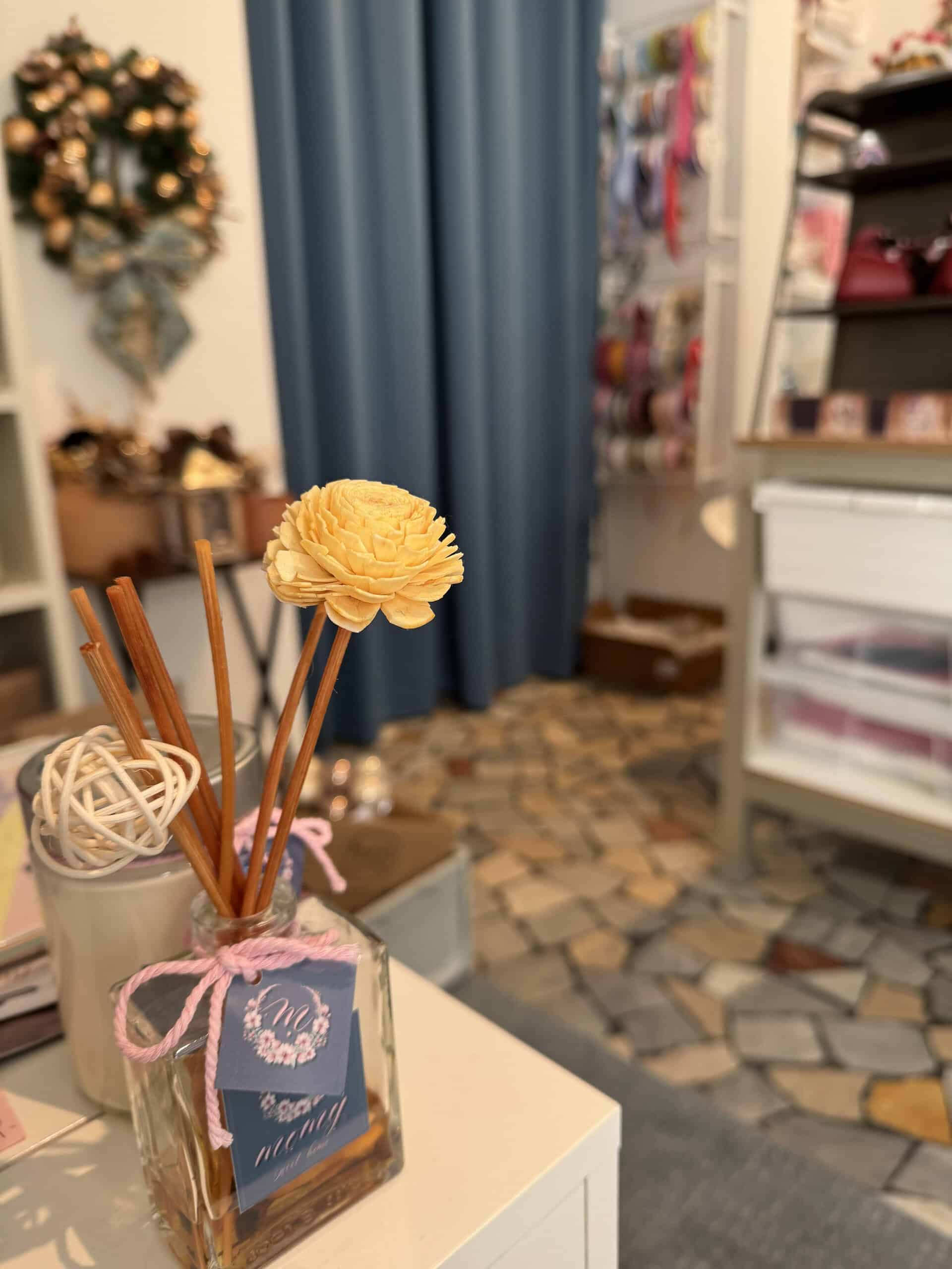 “Ho iniziato in casa per divertimento e come hobby, ma durante la pandemia, per riempire il vuoto del lock down, ho provato a creare qualche piccola ghirlanda, dei centrotavola. Amici e vicini di casa, vedendo e apprezzando le mie creazioni, hanno cominciato a chiedermi se era possibile acquistarne qualcuna. La mia famiglia, soprattutto mio marito Alberto, mi ha stimolato ad aprire un sito online (https://www.momysweethome.com/) per farmi conoscere e avviare un’attività commerciale e così ho aperto una partita IVA. Ho scoperto che più andavo avanti e più mi divertivo ed ero contenta. Ma in casa si stavano accumulando i molti materiali che mi servivano per creare i vari prodotti: fiori secchi e di plastica, nastri, decorazioni, scatole per gli imballaggi… Il mio appartamento stava diventando un magazzino, anche perché la vendita online andava sempre più incrementandosi”.