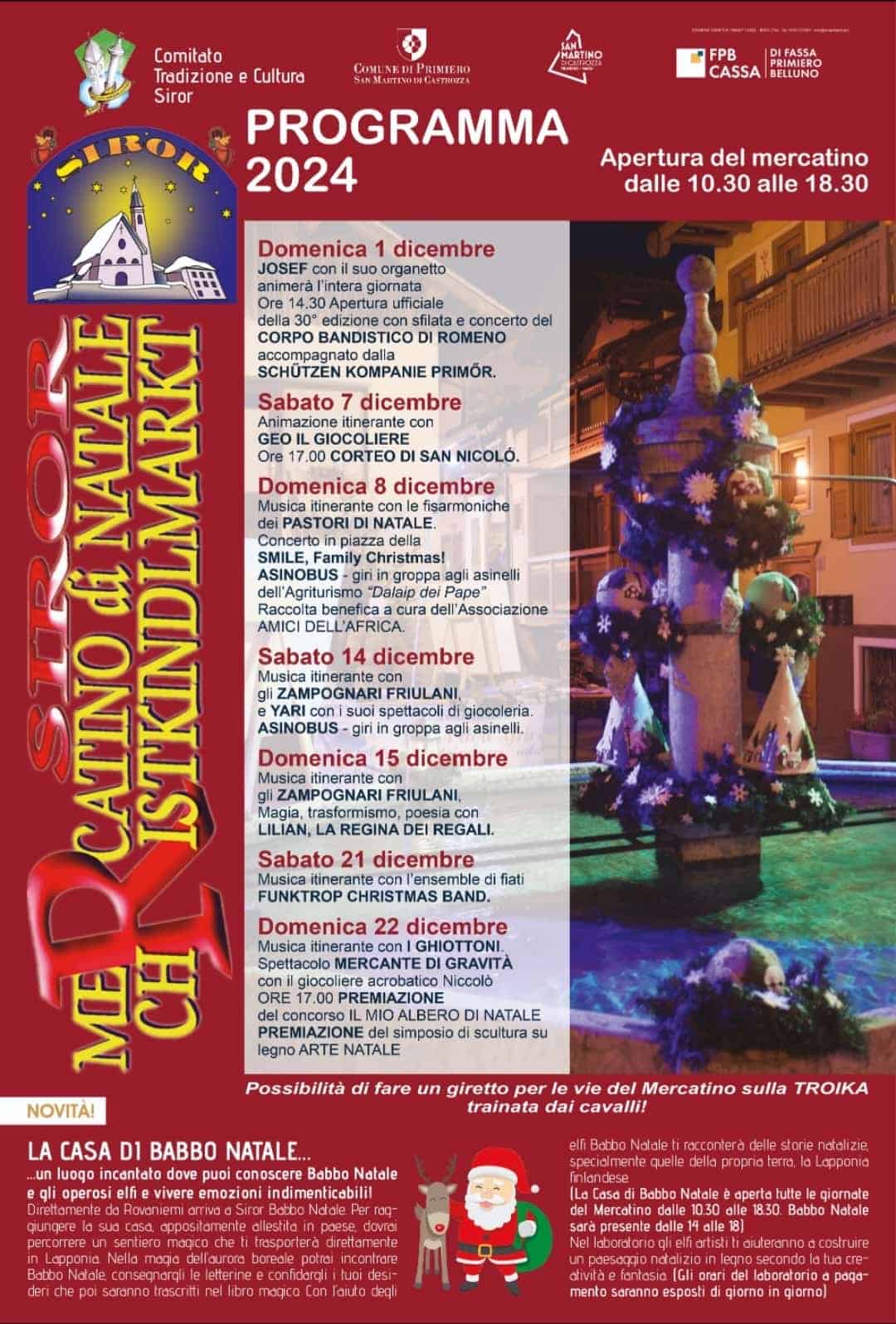 Con l’Avvento a Siror, antico borgo nella Valle di Primiero a ridosso delle Pale di San Martino Castrozza, nelle festività che precedono il Natale propone il suo originale Mercatino che è anche il più vecchio del Trentino.
