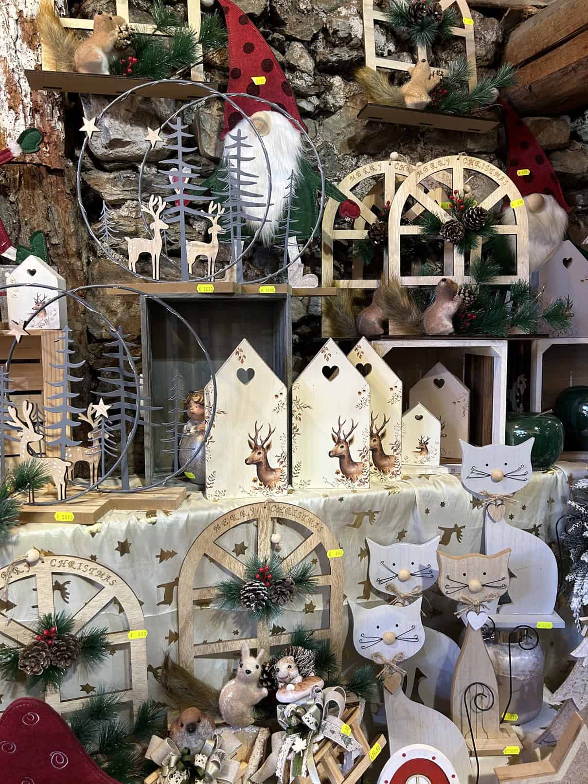 Ad oggi, il Mercatino conta una quarantina di espositori che propongono i loro prodotti nelle caratteristiche casette in legno o in tipici avvolti, fienili o stalle lungo le vie del paese: ciò conferisce al Mercatino un’ambientazione veramente suggestiva. Di particolare interesse l’offerta delle specialità gastronomiche come i dolci appena sfornati nel panificio Zanetel tra cui il fragrante “brazedel”di Capodanno olo zelten e altri tipici dolci natalizi. Poi si può trovare il Primiero stagionato del caseificio di Primiero, un eccellente formaggio a latte crudo, i mieli e le marmellate, la carne fumada della macelleria Bonelli nonché altre specialità locali. L’offerta commerciale spazia poi supantofole, cappelli in feltro, cioccolatini artigianali, il vin brulè e le frittelle di mele e una miriade di originali creazioni prettamente natalizie per l’albero, la tavola, il presepe e la decorazione della casa.