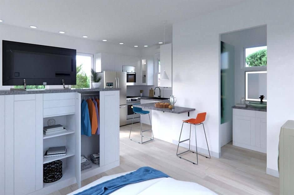 Se l’idea non è certo nuovissima, dato che nasce nel ’29 del secolo scorso, tecnologie e materiali utilizzatioggi fanno la differenza. L’involucro è composto da pannelli strutturali isolati, ad alta tenuta ermetica per ridurre il consumo energetico, così come l’impianto di illuminazione a LED e gli elettrodomestici ad alta efficienza abbattono in maniera considerevole i costi di gestione.