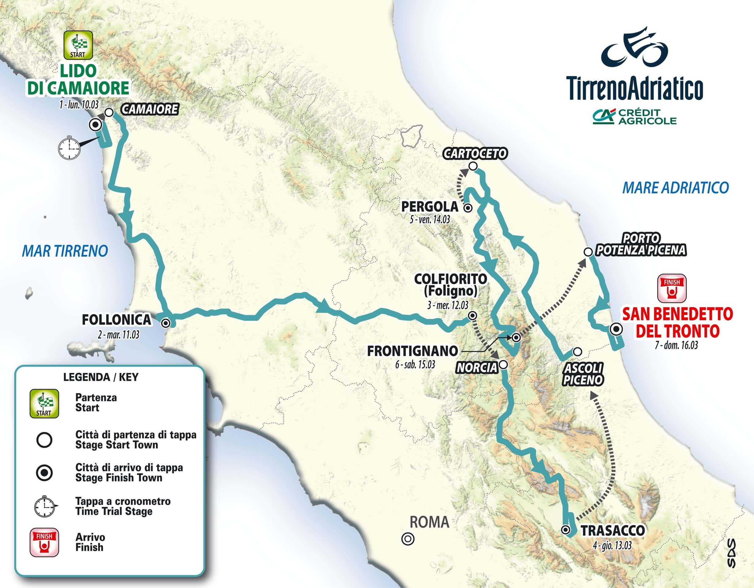 Il percorso della 60^ Tirreno-Adriatico Crédit Agricole