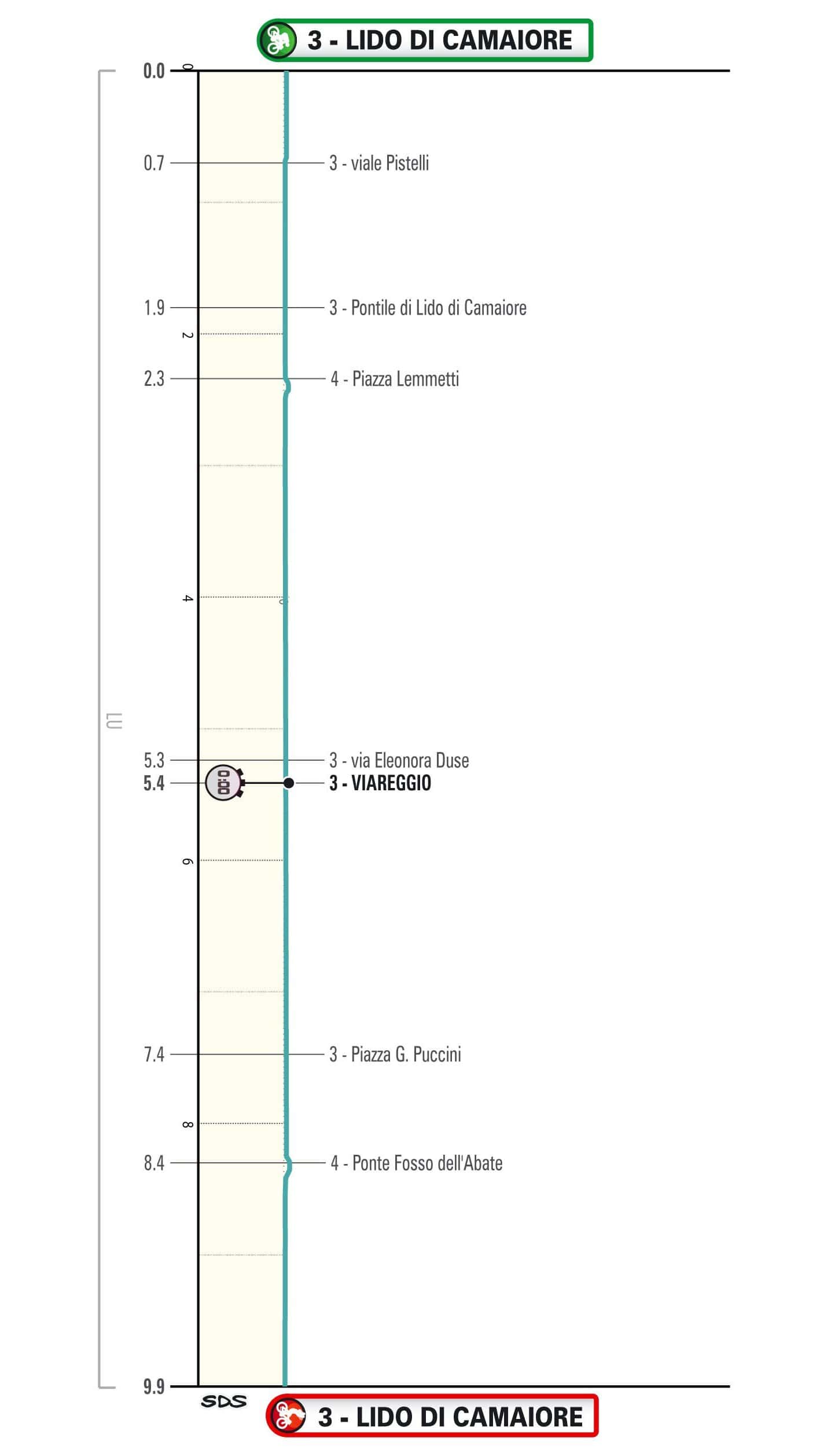 Cronometro individuale perfettamente pianeggiante composta da una due settori praticamente rettilinei che corrono in andata e ritorno sul lungomare di Camaiore e Viareggio con soltanto alcune curve di raccordo e il “giro di boa”. Svolta a U al km 5.4 a Viareggio dove viene rilevato il tempo intermedio. Successivo rientro rettilineo al Lido di Camaiore dove una svolta a S immette nell’ultimo chilometro.
