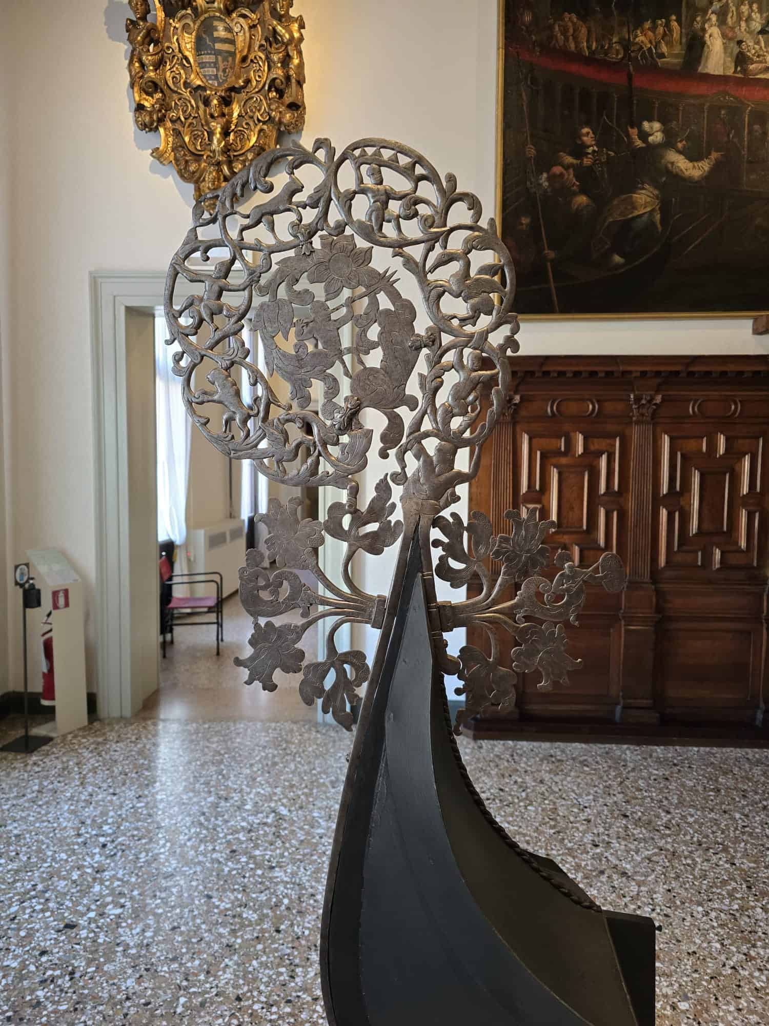 Vittore Carpaccio e Gentile Bellini. Con il miracolo della croce a Rialto e miracolo della reliquia a San Lorenzo. I due grandi maestri del Rinascimento, si divertono a riprendere decine di gondole e gondolieri. Carpaccio, addirittura, raffigura un “pope” africano. Ebbene quelle gondole di sei secoli fa, sembrano lontane parenti degli scafi di oggi. Totalmente è cambiato il ferro da prua (come si può ammirare quello del ‘600 al museo Correr). Oggi la tradizione vuole che siano raffigurati il berretto, o corno ducale, i sei sestieri più la Giudecca. Si incontra tanta fantasia nella tradizione. Poi un confronto con le forcole. Nel ‘400 sono pezzi di legno piatti, nel Novecento sculture complesse in noce come ci spiega il maestro Saverio Pastor che oggi espone le sue opere a Parigi.
