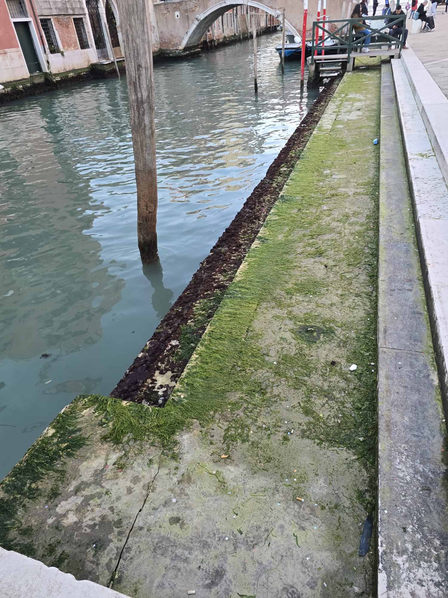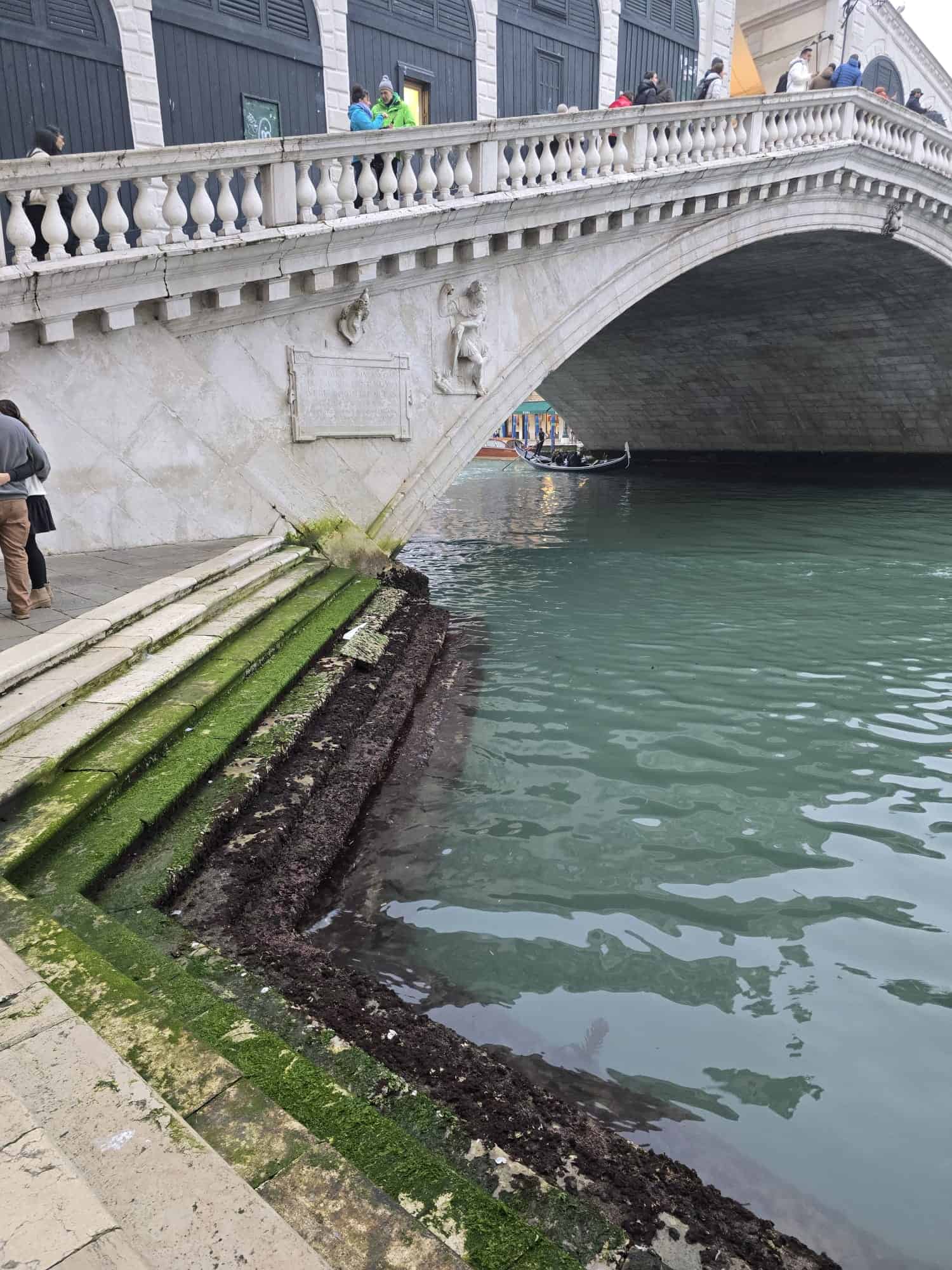 Per comprendere meglio come è cambiata la navigazione nei canali veneziani, ho trovato negli archivi, una gondola per un matrimonio a SS.Giovanni e Paolo, anni Settanta. Ho fatto il confronto con la riva di oggi. In pratica inservibile e totalmente sommersa dalla marea e piena di alghe. Stesso confronto sulla riva sotto il ponte di Rialto. Un secolo fa si notavano una decina di gradini bianchi candidi. Oggi ridotti a tre, e sporchi.