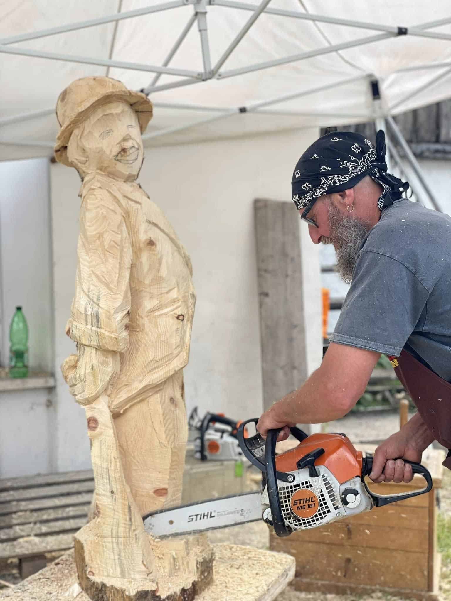 “L’idea nasce nel 2020 – racconta il presidente della Regola, Giansilvio Chiesura – dopo il primo danneggiamento del grande faggio secolare dovuto ai catastrofici eventi di Vaia del 2018 e delle grandi nevicate di aprile-maggio 2019. Come Regola, fin da subito abbiamo pensato di valorizzare quel legno, realizzando delle sculture per ricordarlo negli anni. Quindi avevamo deciso di creare questo simposio già nel 2020, ma causa covid non fu possibile. Dopo cinque anni, nonostante interventi di cura specifici, il grande faggio è collassato e abbiamo deciso di riproporre il simposio coinvolgendo cinque scultori. Il titolo: Gli Occhi del Grande Faggio”.