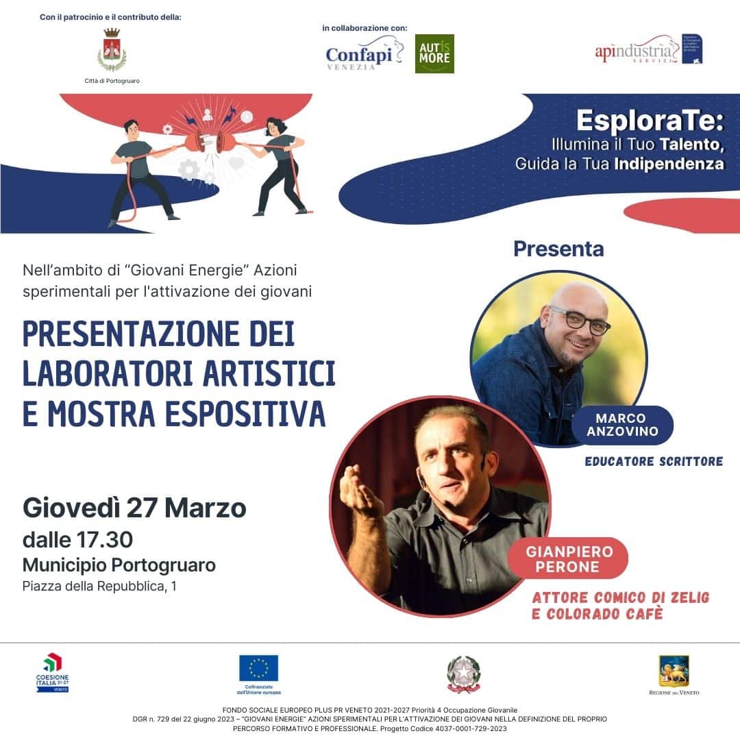 Il problema del mismatch tra domanda e offerta di lavoro passa anche attraverso lo sviluppo progressivo di una rete territoriale che coinvolga istituzioni, enti e stakeholder locali, al fine di creare opportunità formative e professionali per i giovani, con l’obiettivo di rafforzare le politiche attive del lavoro. Proprio per questo, nell’ambito del progetto “EsploraTe – Illumina il tuo Talento, guida la Tua Indipendenza” – dgr 729/23, finanziato dal Fondo Sociale Europeo tramite la Regione del Veneto e promosso da Apindustria Servizi, (iniziativa che mira a contrastare la dispersione scolastica e l’inattività giovanile), è organizzata la  presentazione dei laboratori artistici e della mostra espositiva, realizzati dai giovani Portogruaresi negli scorsi mesi, grazie alla collaborazione di esperti operatori e artisti locali. L’iniziativa si terrà il giorno Giovedì 27 marzo ’25, dalle ore 17.30, presso la Sala consiliare del municipio di Portogruaro (piazza della Repubblica).