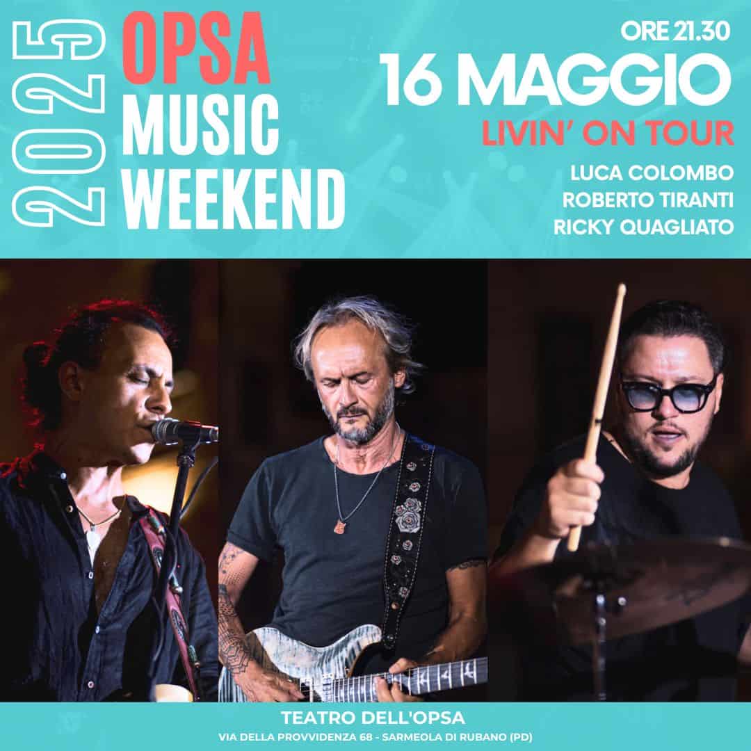 Ad aprire il programma delle serate del week end musicale, venerdì 16 maggio alle ore 21.30, sarà LIVIN’ ON TOUR un trio d’eccezione: Luca Colombo, celebre chitarrista e colonna della musica italiana, Roberto Tiranti, straordinaria voce e bassista di livello internazionale, e Ricky Quagliato, solido e talentuoso batterista. Nati come trio nel 2023, durante il fortunato tour di Gianni Morandi, hanno deciso di portare sul palco un proprio progetto musicale che mescola con raffinatezza sonorità pop, soul e rock-blues. Il repertorio attraversa epoche e generi – da Jimi Hendrix ai Beatles, passando per Sting – offrendo al pubblico un viaggio musicale ad alto tasso emotivo e tecnico, ricco di improvvisazioni, energia e grande sensibilità interpretativa.