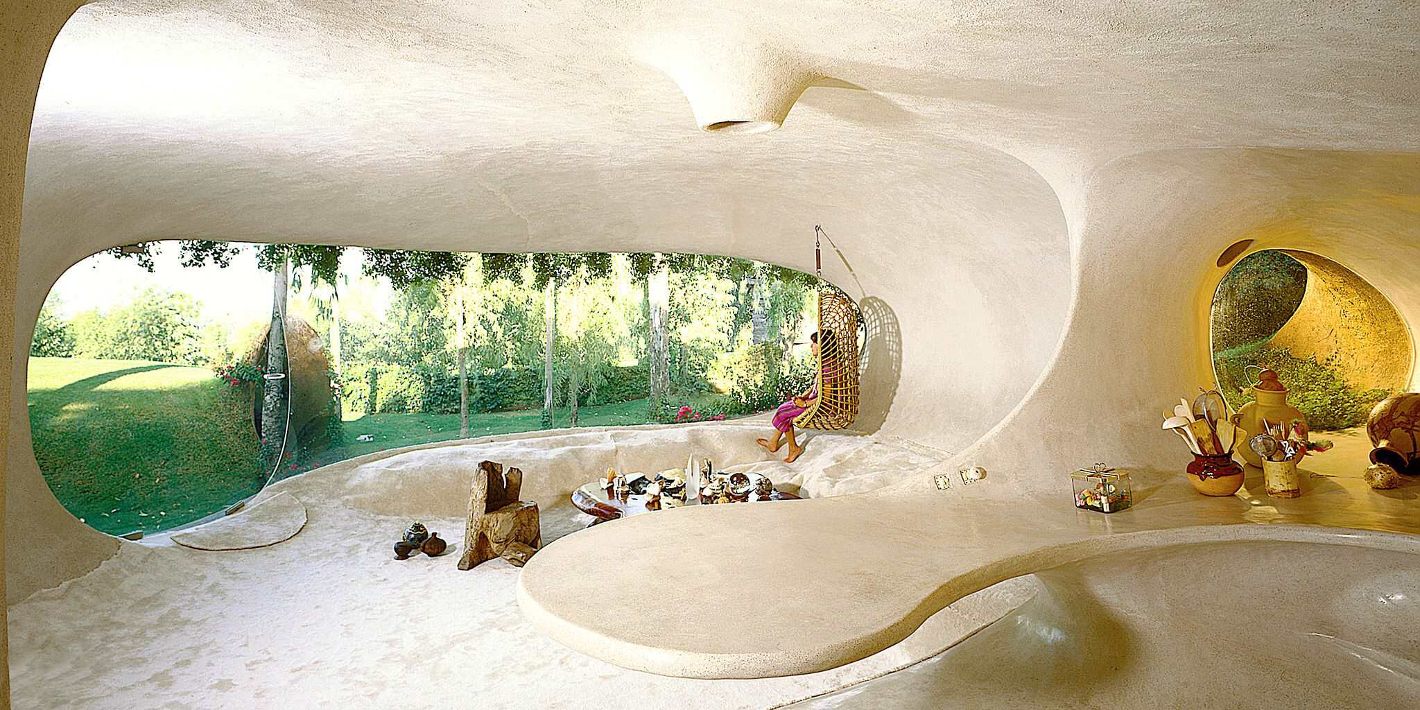 Tra le architetture organiche più famose, troviamo il Nido di Quetzalcoatl, una vera scultura abitabile. Che si snoda come un serpente all’interno di un bosco a nord di Città del Messico, esempio di perfetta integrazione tra architettura e paesaggio naturale. «Questo progetto è nato per caso. Durante i lavori sono state trovate diverse grotte, una delle quali somigliava alla testa di un serpente con le fauci aperte. A quel punto ho deciso di aggiungere una coda e chiamarlo Quetzalcoatl, senza apportare alcun cambiamento al territorio», racconta Javier Senosiain. Poi, la Casa Organica, massima espressione del suo lavoro.