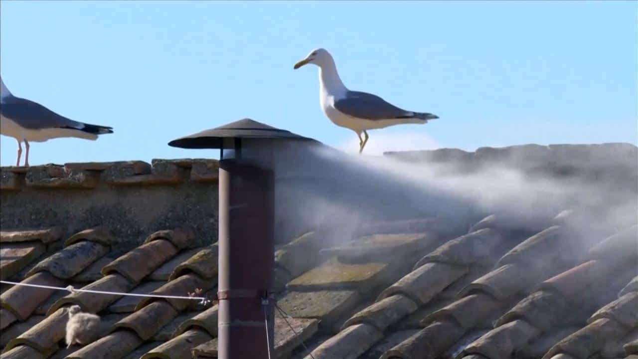 Dei giorni del conclave conserverò a lungo un’immagine del primo giorno che riassume l’attesa dell’eletto. Si tratta di comunicazione televisiva che ho seguito sul TG de la 7 con il commento del direttore Mentana. Una telecamera fissa che per due ore ha inquadrato il tetto della Cappella Sistina. Nella luce declinante del tramonto si vedeva il fatidico comignolo in primo piano, in un contesto di tegole e pietre, una scena di cose inanimate e però vigilate da una presenza viva, quella di un grosso gabbiano in riposo che a volte scattava in un breve volo per poi tornare nella sua vigile posizione. In occasioni come questa, l’immagine fissa ha una sua funzione: essere pronta in qualsiasi momento per l’annuncio in diretta che viene dato dalle fumate che si sanno da secoli nere o bianca, un linguaggio essenziale che non ricorre alla sofisticata tecnologia del nostro tempo. La fumata supera l’uso delle parole per un annuncio che farà il giro del mondo.