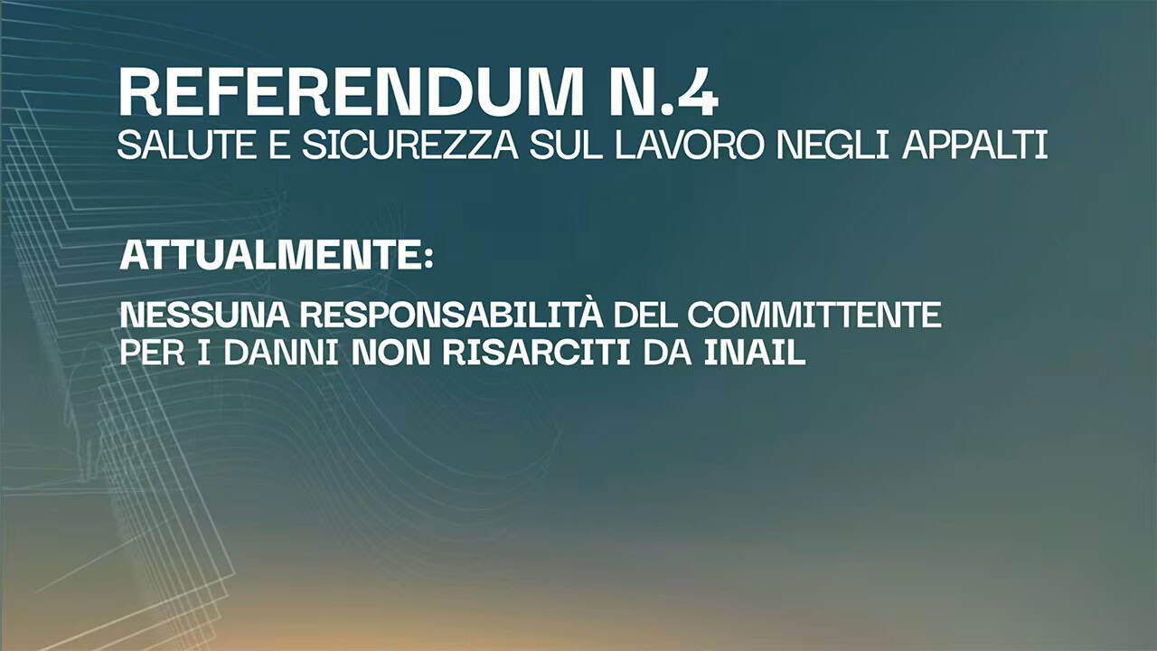 In questo scenario di grande difficoltà e preoccupazione, si inserisce la scadenza referendaria. Che, come spesso accade, mette assieme diversi quesiti riguardanti materie e questioni diverse ed eterogenee. Il referendum numero quattro, per quanto con una formulazione criptica ed incomprensibile, tende comunque a limitare indirettamente il rischio infortuni nell’ambito dei subappalti.