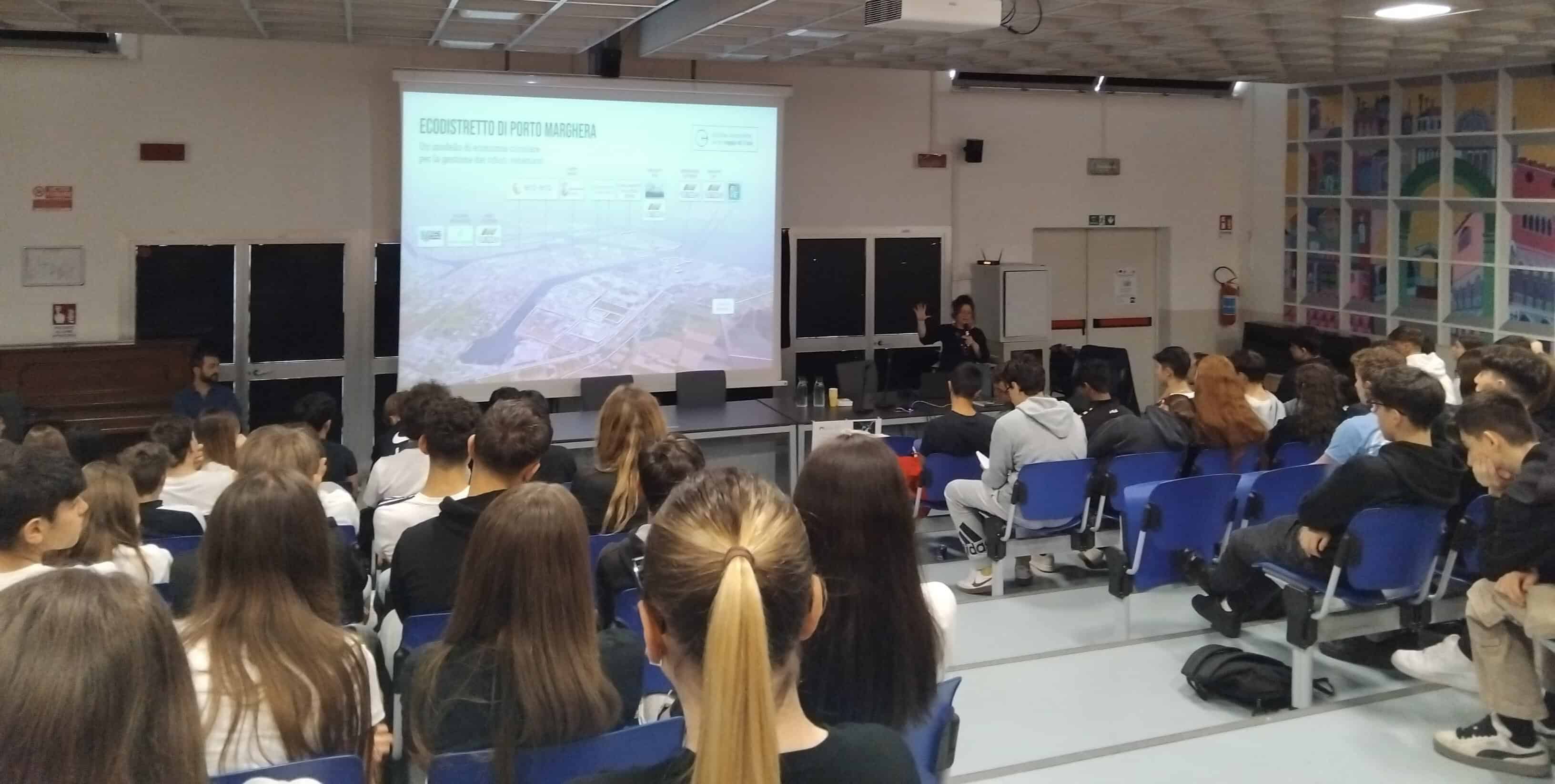 All’incontro, moderato dalla professoressa di scienze Francesca Pezzin, hanno partecipato 160 studenti del secondo anno del liceo Stefanini, scuola in cui vi è il massimo impegno nell’educazione ai corretti conferimenti e al valore dell’economia circolare a tutela dell’ambiente, con formazione continua e attività anche culturali e creative collegate al riciclo.