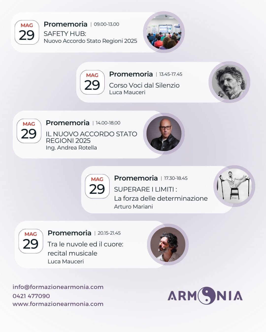 quello di fare in modo che il posto di lavoro sia il luogo più sicuro in cui stare.”Sono in programma, inoltre, tre appuntamenti-spettacoli gratuiti, aperti al pubblico: