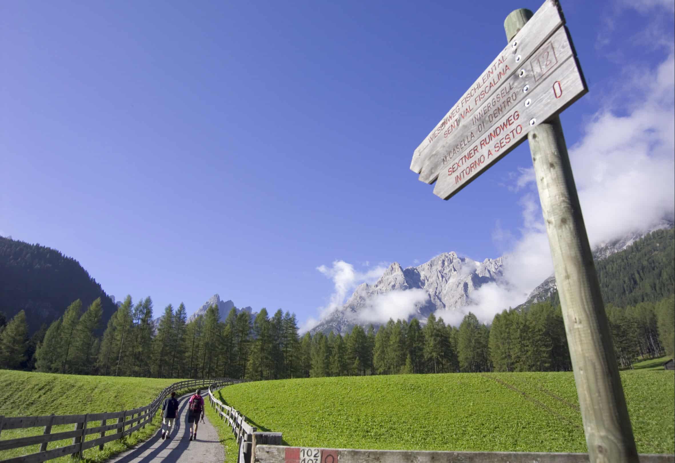 Da qui inizia anche una piacevole passeggiata che porta al Passo Monte Croce, 6 km di cammino con un dislivello di 290 metri, percorribile anche dai bambini, visto che il ritorno si può fare volendo in autobus. Il percorso si snoda lungo un ampio sentiero boschivo tra larici e abeti, per lo più pianeggiante, con vista sulle splendide vette della Croda Rossa di Sesto, del Monte Paterno, della Cima Nove fino alla Punta Tre Scarperi. La passeggiata permette di scoprire anche la rigogliosa flora alpina che in primavera dà il meglio di sé.