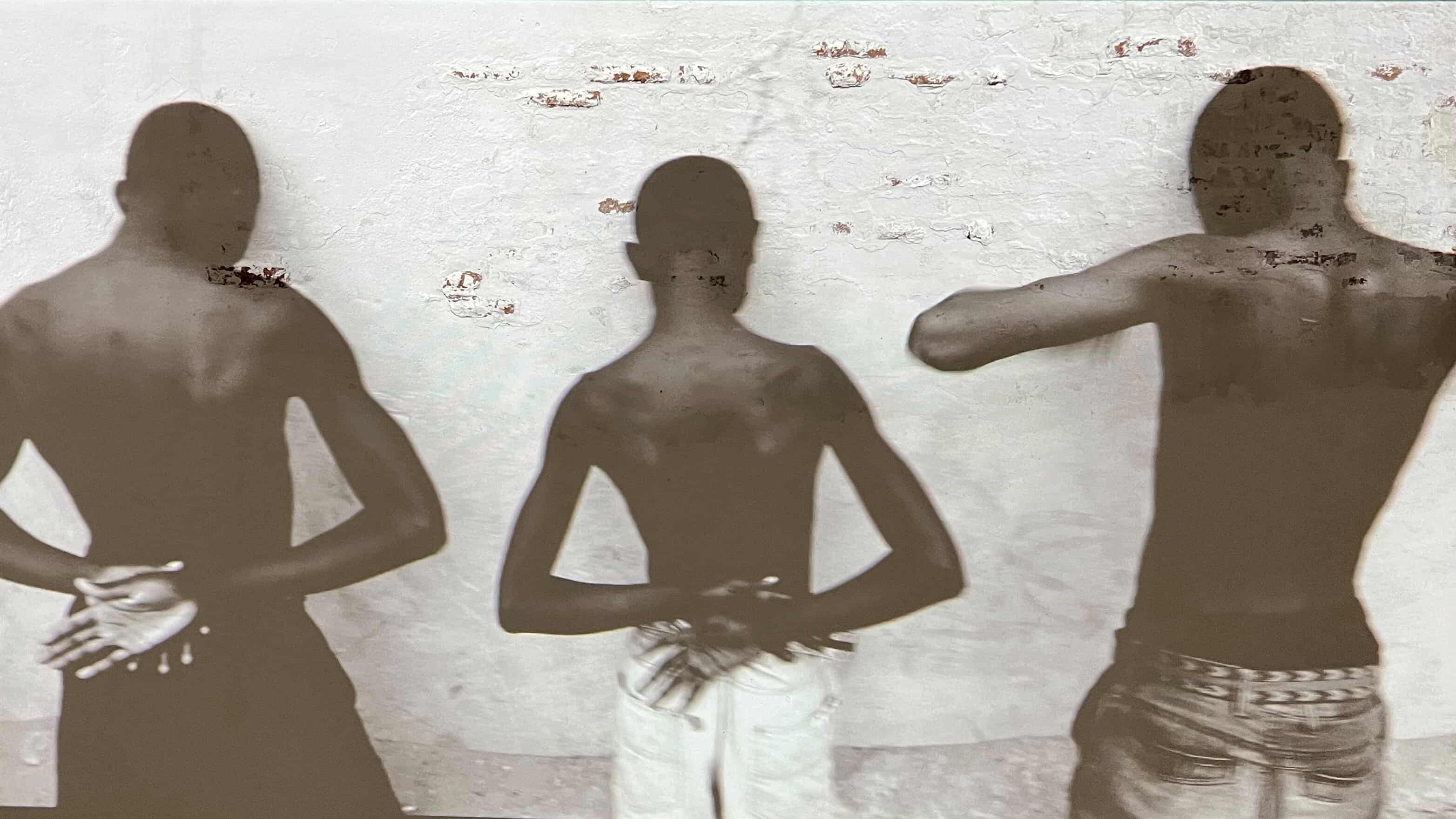 Nello stanzone dai bianchi muri scrostati, senza finestre, si allineano in sequenza apparentemente casuale, lavori significativi: ad esempio il video in 35 millimetri che Antonio Manuel girò nel 1973, ad inquadrature fisse, per ritrarre i protagonisti del celebre dibattito “Follia e Cultura” al MAM di Rio de Janeiro. Le riprese frontali, laterali e di spalle – tra i protagonisti un giovane e affascinante Gaetano Veloso – sono sonorizzate con l’inno nazionale francese, La Marsigliese. Sulla parete opposta The Maelström,un altro video del 2024 dello spagnolo Santiago Sierra che ci ricorda immagini molto tristi e recenti: qui siamo in Gambia. Uomini inginocchiati, le mani dietro la testa, obbediscono ad un rito di sottomissione. Solo che i corpi scuri si fanno via via pattern su sfondo bianco, elementi grafici di una composizione disumanizzante. Una denuncia fortissima sul potere e le sue derive. Silvano Rubino, celebre artista concettuale veneziano, affida al neon un messaggio profondo e semplice allo stesso tempo: Art is my Nation. Una via di condivisione, che travalica i confini; un’opera ponte, che profuma di pop art. A sua volta, Daniela Papadia, con Il Filo dell’Alleanza, utilizza il ricamo come strumento per rappresentare le connessioni umane; il ricamo come metafora della “riparazione”. Insieme ad altre donne pacifiste, Papadia ha infatti realizzato arazzi tra Israele e Palestina, e il suo progetto è stato raccontato in un documentario di Francesco Micciché.