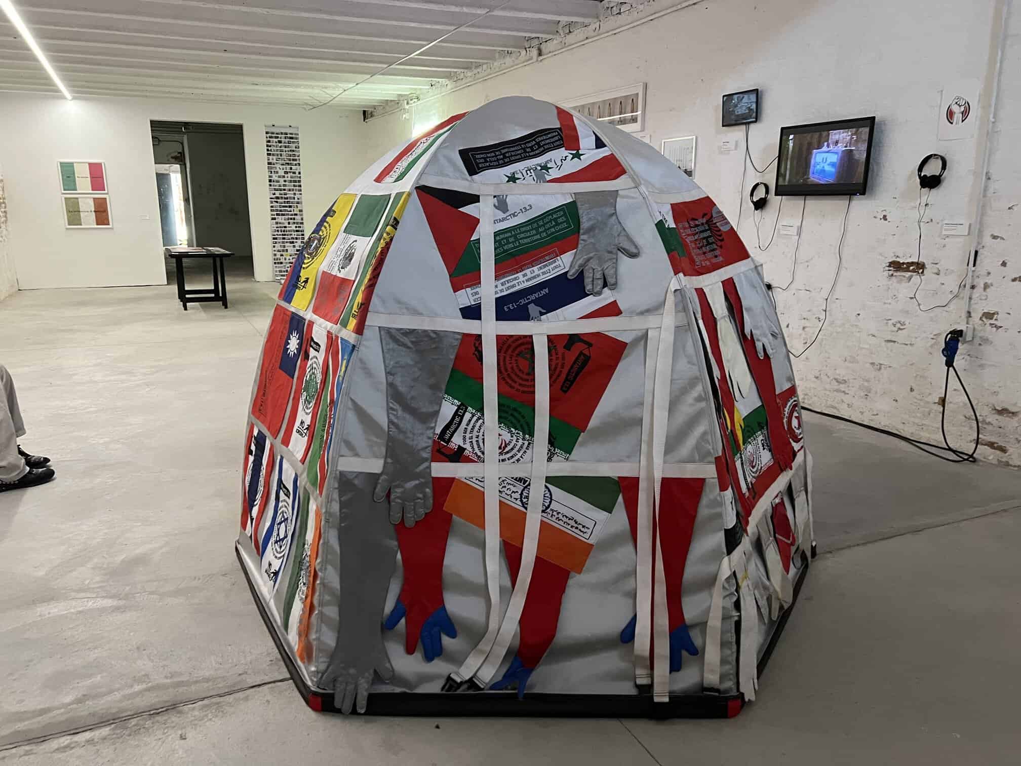 C’è una splendida mostra alla Giudecca, fino al 31 luglio, a Spuma Space for the Arts, in fondamenta San Biagio 800. S’intitola Motion of a Nation ed è curata da un grande della cultura sudamericana, intellettuale, ideatore di mostre sensazionali, teatrante, poeta: Antonio Arévalo. Si tratta di una collettiva prestigiosa, di livello internazionale, in cui artisti di ogni provenienza s’interrogano sulla trasformazione del concetto di nazione. Limite o bandiera identitaria, codice genetico o prigione?