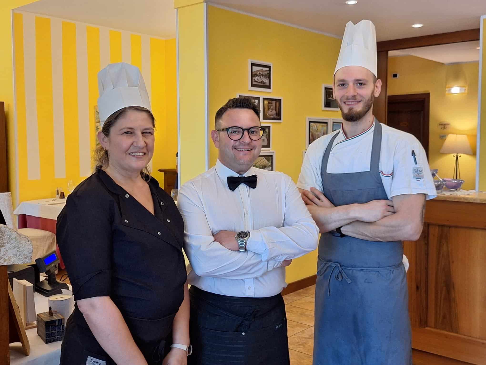 Grande merito va anche alla mia compagna della sua vita e del lavoro, Raffaella Montano, chef di origine napoletana, conosciuta sette anni fa. È lei la regina dei dolci e dei primi piatti: precisa, creativa, instancabile. A completare la squadra in cucina lo chef Giacomo Tufano, anch’egli napoletano, specializzato nei secondi piatti. In sala invece troviamo Teresa, direttrice attenta e gentile, capace di far sentire ogni ospite accolto come a casa. Insomma ho una bella squadra di professionisti.