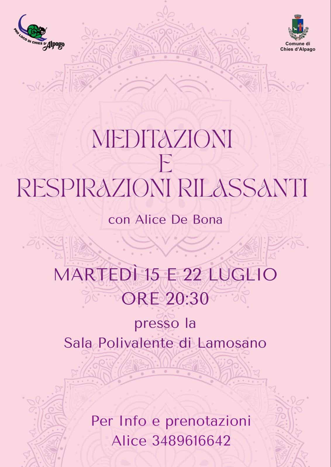Mentre martedì 22 luglio dalle 20.30 si terrà il secondo appuntamento introduttivo, gratuito e aperto a tutti, alla meditazione e respirazione rilassante. Appuntamento quindi con Alice De Bona presso la sala polivalente di Lamosano, sempre a Chies d’Alpago, per un breve percorso di riflessione sulle energie positive e negative che quotidianamente ci condizionano e influenzano il nostro stato d’animo e le nostre relazioni – info tel. 348.9616642.
