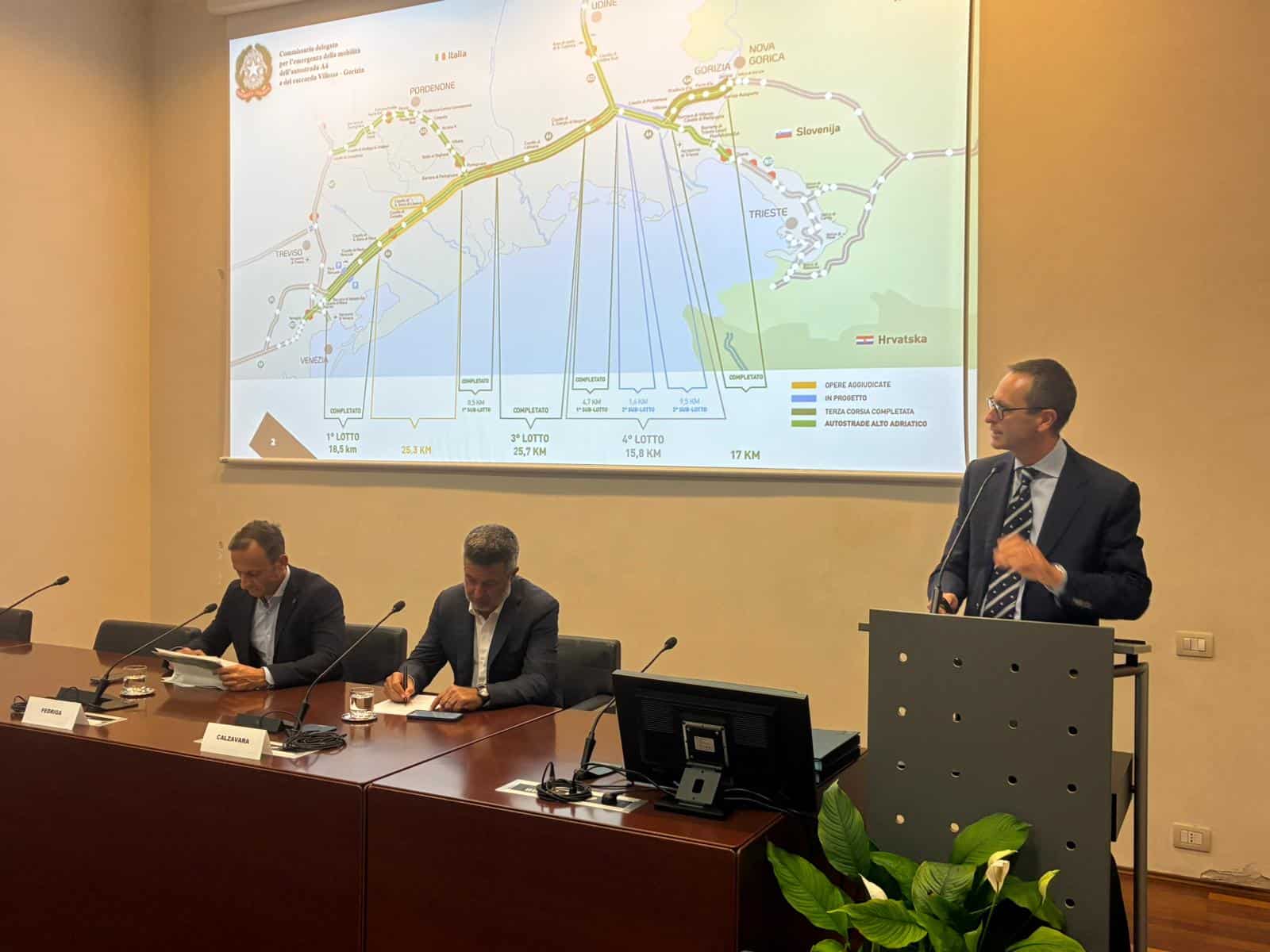 “L’intervento – ha detto Massimiliano Fedriga nella duplice veste di Presidente della Regione e di Commissario per la A4 – non è un semplice ampliamento ma un rifacimento integrale volto a migliorare sensibilmente la fluidità del traffico e garantire una maggiore sicurezza stradale. Parliamo di un’opera che ha rilevanza europea e che porterà, una volta completatra, benefici non solo al Nordest ma a tutto il Paese”.