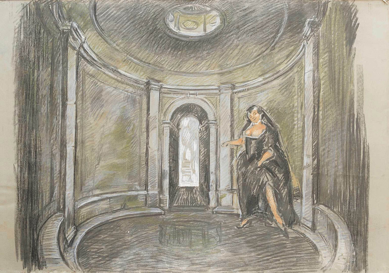 Danilo Donati per il film “Il Casanova di Federico Fellini” Bozzetto scenografico 1970 ca. Tempera e gesso su cartoncino Fondazione Massimo e Sonia Cirulli
