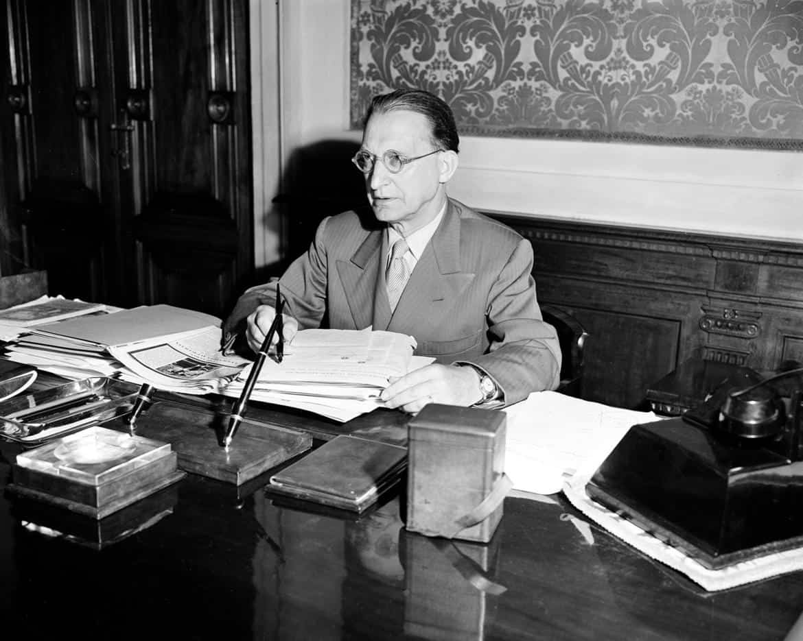 20090620 - ROMA - POL - PAPA: DE GASPERI FEDELE VALORI, NON USO' CHIESA FINI POLITICI. Alcide De Gasperi in una immagine di repertorio. I governati d'Italia e del mondo, ''specialmente'' i cattolici, abbiano sempre come ''incoraggiamento e stimolo'' la figura di Alcide De Gasperi che, ricorda il papa, ''seppe prodigarsi efficacemente per il bene comune'', fu ''docile e obbediente alla Chiesa, fu dunque autonomo e responsabile nelle sue scelte politiche, senza servirsi della Chiesa per fini politici e senza mai scendere a compromessi con la sua retta coscienza''. Il pontefice vuole inoltre evidenziare dello statista trentino ''la riconosciuta dirittura morale, basata su una indiscussa fedelta'ai valori umani e cristiani, come pure la serena coscienza morale che lo guido' nelle scelte della politica''. ANSA/DRN