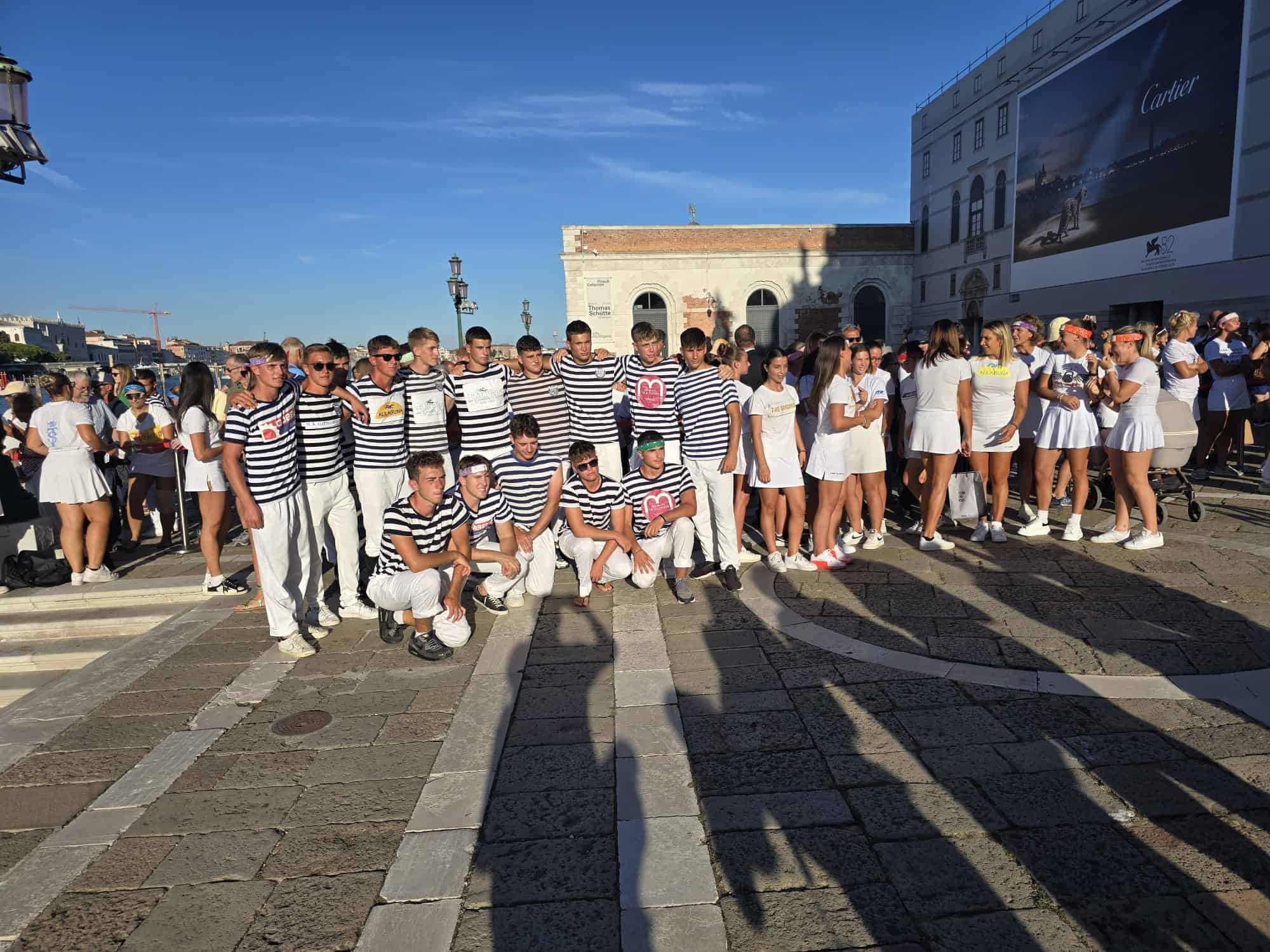 Poi, guardando i regatanti, vedo i giovani campioni dell’anno scorso Matteo Zaniol e Niccolò Trabuio, poco più che ventenni. Ovvero il futuro è assicurato. Quindi Luisella Schiavon e Lara Vignotto, vincitrici della Storica, madre e figlia. Cinquantenne e ventenne, che potrebbero fare le fotomodelle, unite nella voga.
