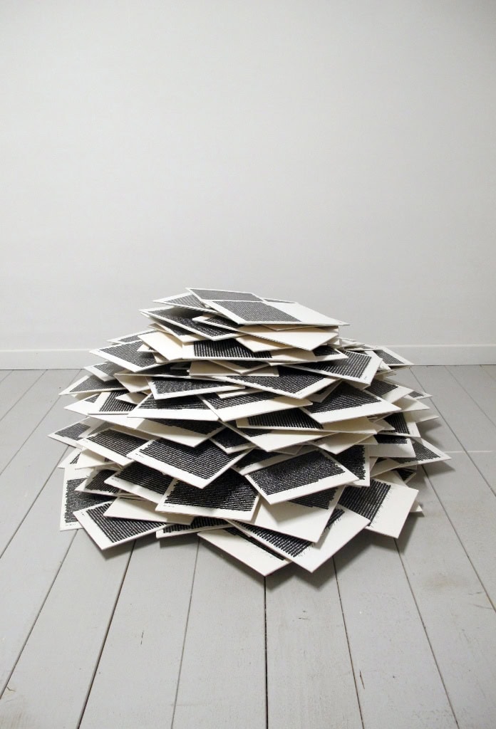 L’artista, che firma i suoi lavori come claudioadami, evidenzia con questa scelta l’impossibilità di interrompere il filo nero che corre e si dipana sulla superficie bianca, giorno dopo giorno, minuto dopo minuto. “Una ciclicità continua nella quale non si sa bene qual è il motivo per farlo, o non farlo, ma va fatto. Ho messo questo aspettare in quello che ritengo sia la stessa problematica: Beckett la sviluppa con le parole. Io in termini di segni”, ha raccontato l’artista.