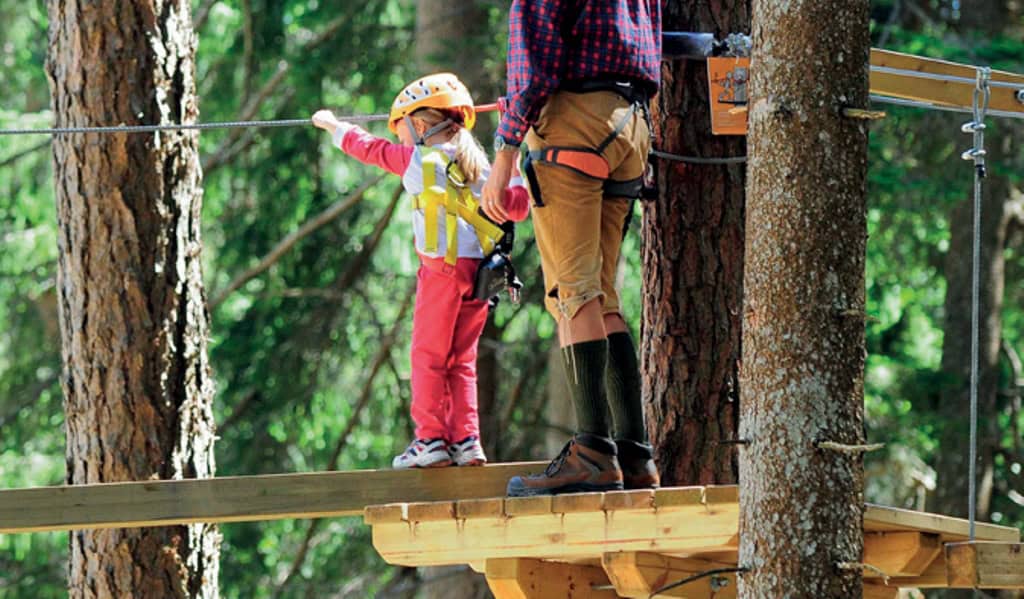 Oltre a boschi e laghi, ci sono luoghi pensati ad hoc per il divertimento dei bambini… e non solo! È il caso, ad esempio, del Tre Cime Adventure Park, un percorso a corde alte che regala una visuale completamente nuova del panorama. Ponti tibetani, scale dei pirati, dischi e passerelle, liane e teleferiche, il tutto nella massima sicurezza. Sono 4 i percorsi aerei, a diversa altezza, a seconda dell’età. I più piccoli, da 3 a 5 anni, si possono cimentare in un percorso gioco dedicato, ragazzi e adulti invece posso scegliere tra 3 percorsi diversi fino a quello a 14 metri d’altezza. A completare il divertimento, un’avventurosa Zip line per bambini e adulti che attraversa il fiume. Ogni mercoledì di agosto 2025, inoltre, per rendere ancora più emozionante l’esperienza, l’Adventure Park sarà aperto anche in notturna, dalle 21 alle 23.30, prenotazione obbligatoria.