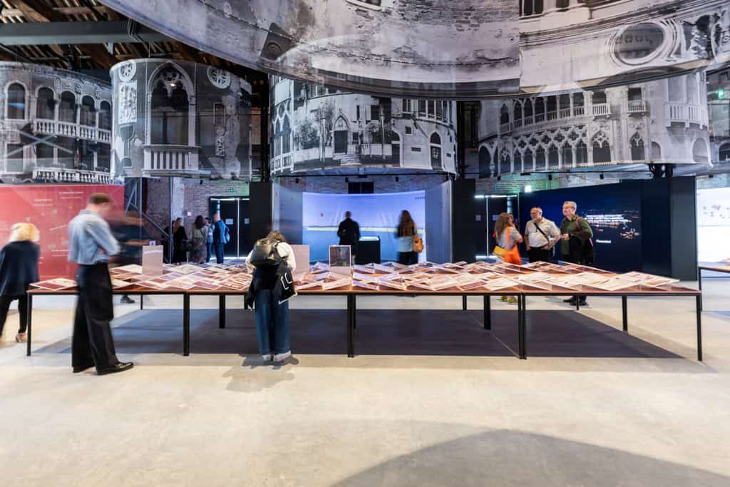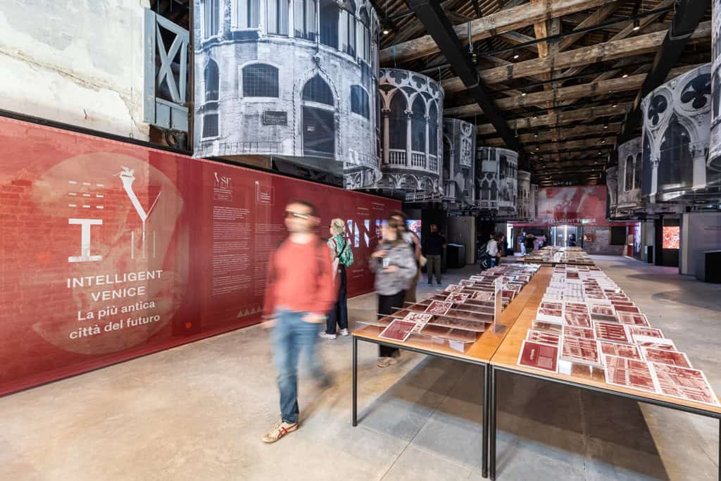 Nello spazio del Padiglione, un interno architettonico basilicale con capriate lignee, cinque “Absidi delle intelligenze” offrono un viaggio immersivo nella storia e nella gestione della laguna e della città. Le Absidi, intitolate “Tempo millenario”, “Laguna regolata”, “Natura antropizzata”, “La Venezia della gente”, “Forma urbana”, permetteranno al pubblico di esplorare l’evoluzione “intelligente” della città con la sua laguna – per lungo tempo le sue mura -. Le invenzioni, le strategie sviluppate per la sua fruizione e per la tutela e l’accrescimento del suo patrimonio culturale. Attraverso proiezioni avvolgenti e postazioni interattive multimediali, offrendo un’esperienza che unisce scienza, tecnologia e narrazione visiva.