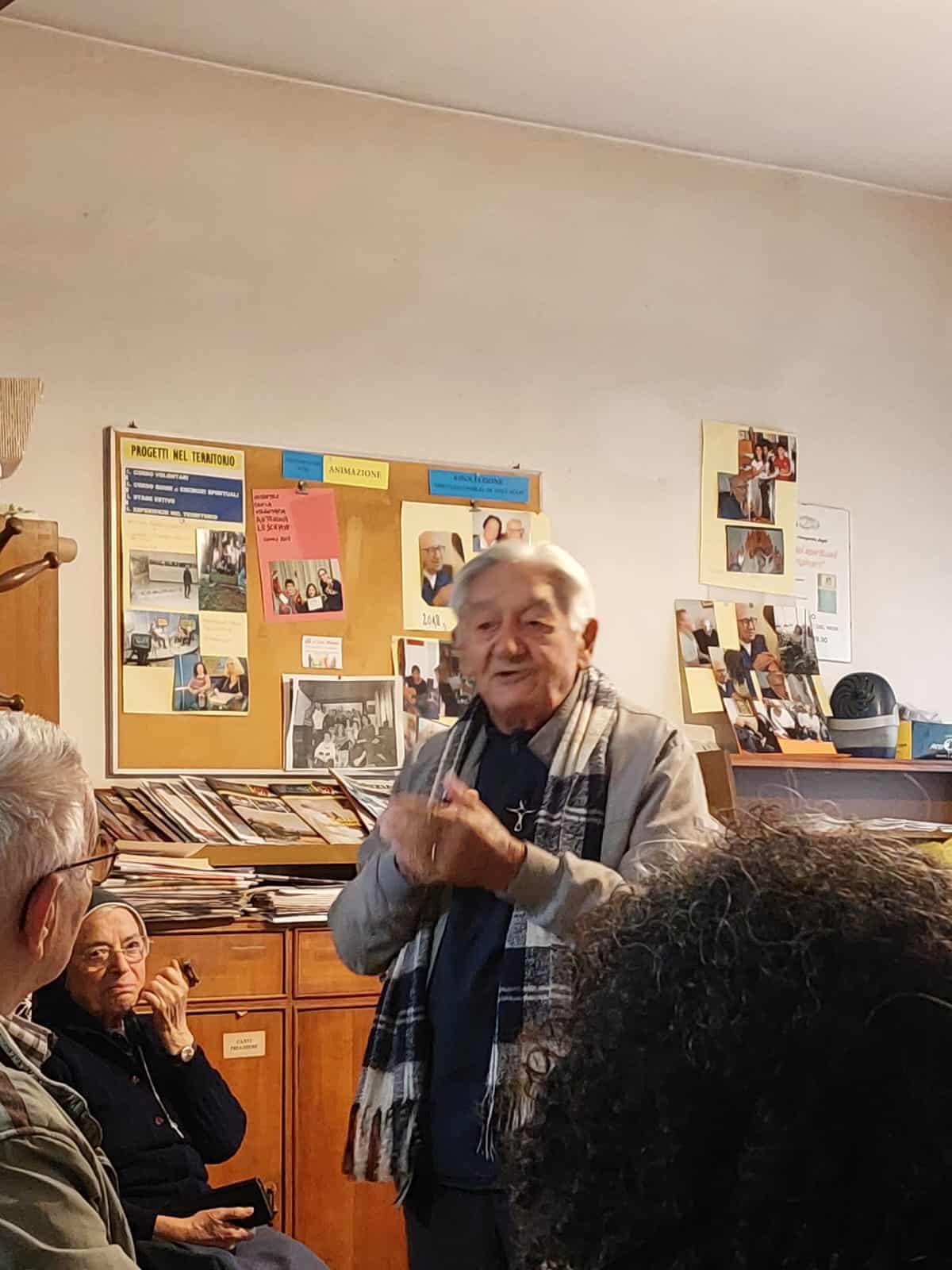 L’incontro è stato introdotto dal presidente della Casa Giuseppe Sbalchiero e dalla coordinatrice Nicoletta Retico, a cui è seguita la meditazione guidata da suor Maria Raffaella.