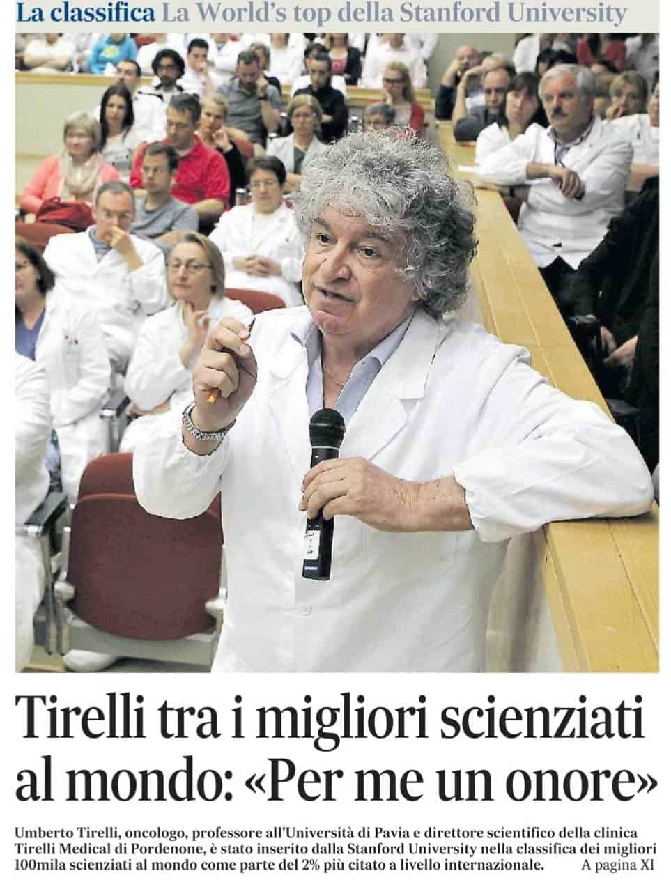 Umberto Tirelli, famoso oncologo e a lungo al vertice del CRO di Aviano, docente all’università di Pavia, titolare della Tirelli Medical di Pordenone, è tra gli scienziati più autorevoli del mondo. La Standford University che periodicamente stila una classifica internazionale sulla base degli studi pubblicati, dei risultati, della credibilità, ha inserito Umberto Tirelli in questa speciale classifica che raccoglie alcune migliaia di scienziati in ogni parte del mondo.