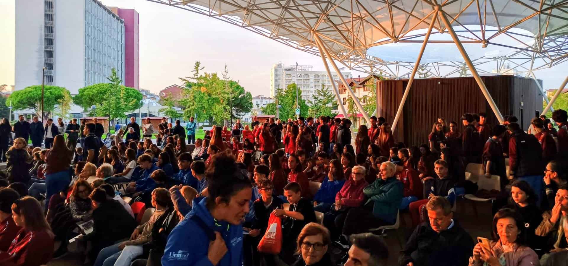 L’evento ha richiamato nel parco termale centinaia di studenti, appassionati e turisti. E’ stato organizzato dalla Federalberghi Terme come ciliegina sulla torta dell’accordo triennale firmato con le Fiamme Oro per utilizzare e promuovere negli impianti di Abano e Montegrotto. Così per una settimana gli atleti del Gruppo sportivo della Polizia di Stato – che conta 256 tesserati con il meglio dell’atletica italiana – si immergono nell’ambiente salubre e rilassante delle Terme euganee con un fitto programma di eventi ludico-sportivi come le “Olimpiadi cremisi” (dal colore sociale del Gruppo) puntellate da inedite sfide in piscina, gare sulle e-bike fino a partite di golf. Partner dell’accordo oltre all’associazione degli albergatori sono i Comuni di Abano e Montegrotto, il Consorzio Veneto Terme, il Centro studi Pietro D’Abano, l’Ogd Terme e Colli euganei della Regione Veneto.