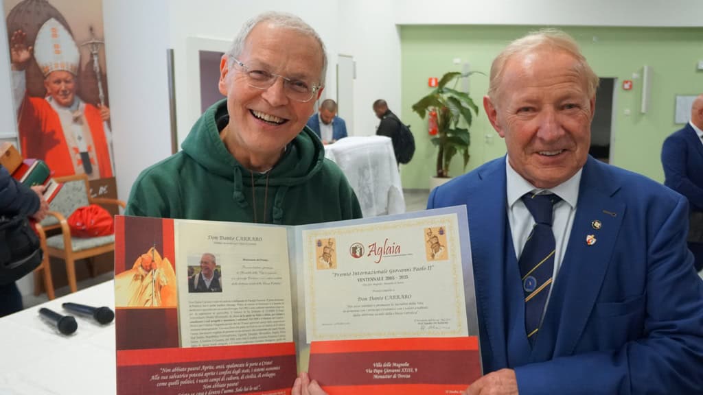 Francesco Benazzi, Direttore Generale dell’Azienda ULSS 2 Marca Trevigiana, e Don Dr. Dante Carraro, Direttore di Medici con l’Africa (CUAMM), sono stati insigniti il 22 ottobre 2025, a Monastier, del prestigioso Premio Internazionale Giovanni Paolo II  dell’Associazione socioculturale ad indirizzo artistico “Aglaia” di Scafati (Sa) con il patrocinio dell’Unci di Treviso, Udine e Roma. Il riconoscimento è stato assegnato per “aver tutelato e promosso la Sacralità della Vita in armonia con i principi cristiani e i valori ereditati dalla dottrina sociale della Chiesa Cattolica.”