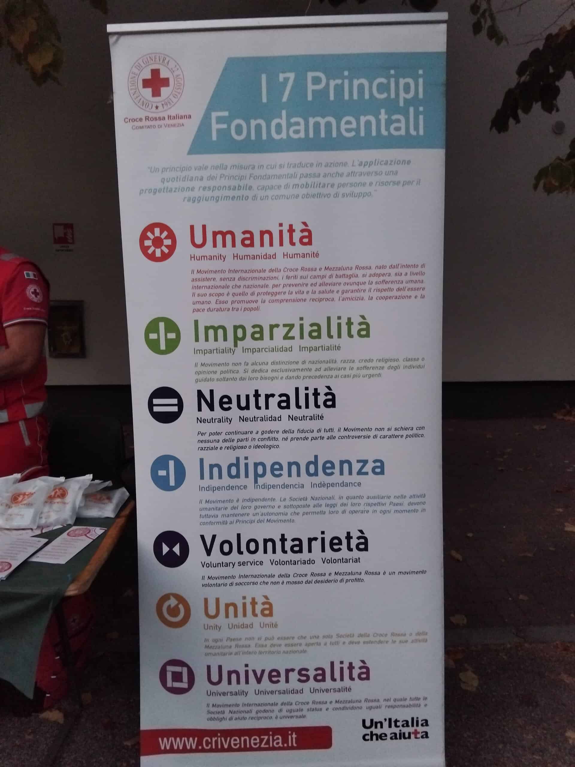 Parole d’ordine per l’inclusivitá sono: umanità, imparzialità, neutralità, indipendenza, volontarietà, unità, universalità. Hanno partecipato all’evento del 17 ottobre tutte le realtà che animano il Tavolo per le persone senza dimora del Comune di Venezia, oltre alla Casa dell’Ospitalità (http://www.casaospitalita.it): Caritas veneziana , Croce Rossa, Croce Verde, Emergency, padri Cappuccini, San Vincenzo, Coges don Milani, Comunità di Sant’Egidio, Missione Belem.