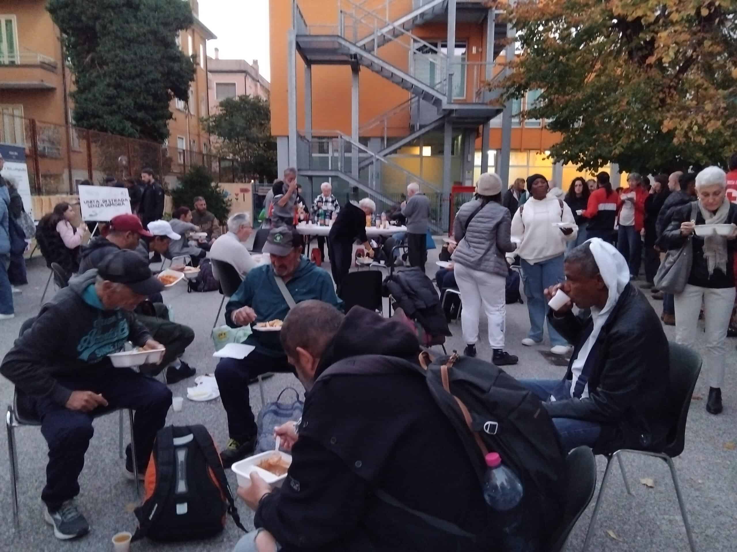 “La notte dei senza dimora”, giornata internazionale che si celebra il 17 ottobre in tutto il mondo, è stata una importante occasione anche a Mestre, dove all’evento promosso al teatro Kolbe in via Aleardi, hanno partecipato oltre 150 persone. L’iniziativa, promossa dal Tavolo per le persone senza dimora, coordinato dal Comune di Venezia (Assessorato Politiche Sociali), ha visto il coinvolgimento di decine di volontari di diverse associazioni e si è conclusa con una cena in giardino e una partita di calcio che hanno coinvolto anche chi vive per strada. Moltissime le persone senza dimora presenti, infatti, uomini e donne che vivono in strada, ma che, per operatori del Comune e volontari, sono diventati amici e amiche. Tanto che decine di volontari di Mestre, Favaro e Marghera hanno preparato con gioia le pietanze offerte nel bel buffet condiviso tra tutti.