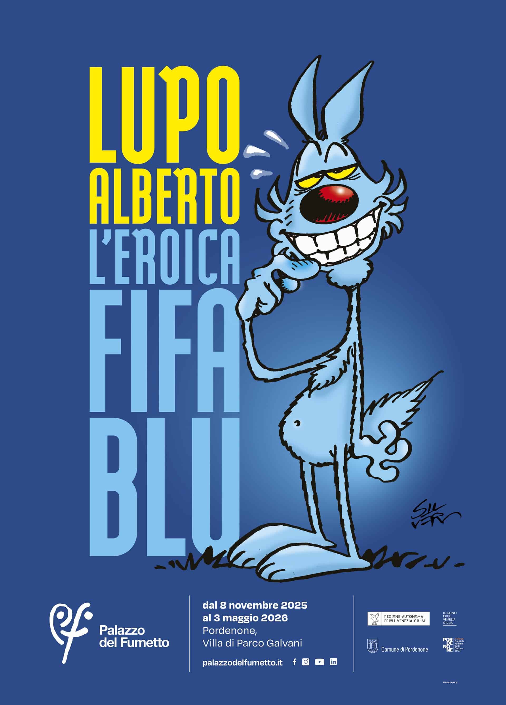 Dal 8 novembre 2025 al 3 maggio 2026, il Palazzo del Fumetto di Pordenone celebra uno dei personaggi più amati della storia del fumetto italiano con la mostra “L’eroica Fifa Blu”, interamente dedicata a Lupo Alberto, creato dalla genialità di Silver – pseudonimo di Guido Silvestri. A oltre cinquant’anni dalla sua nascita, il lupo azzurro più famoso del fumetto torna protagonista in un percorso espositivo che ripercorre la sua storia, il suo linguaggio e la sua straordinaria capacità di parlare, con ironia e dolcezza, a generazioni di lettori.